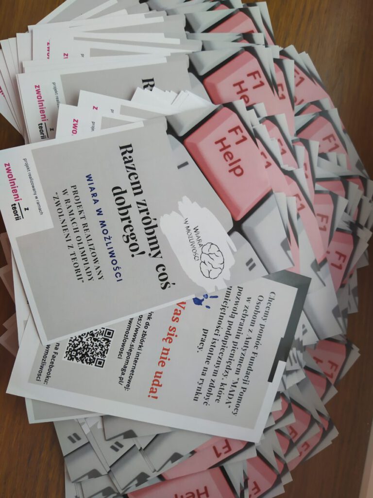 –Celem naszego projektu społecznego „Wiara w możliwości”, który realizowany jest w ramach olimpiady „Zwolnieni z teorii” jest zbiórka pieniędzy na wsparcie Fundacji Pomocy Osobom z Autyzmem „MADA”. W wyniku pandemii i nauczania zdalnego niezbędny jest zakup sprzętu komputerowego –mówi Anna Saska, liderka zespołu – Umożliwi on udział osób autystycznych w warsztatach, które pomogą zdobyć umiejętności potrzebne w niektórych zawodach.