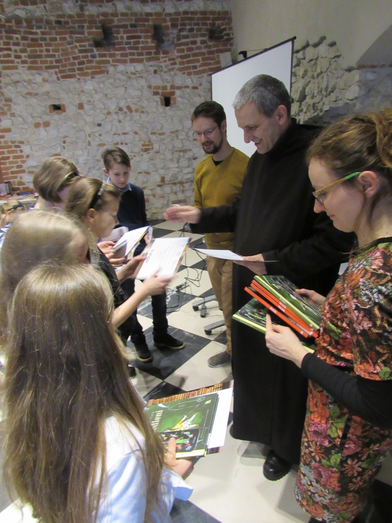 Uczniowie wraz z opiekunem grupy konkursowej Beatą Damasiewicz wzięli udział w uroczystej gali finałowej połączonej z ogłoszeniem wyników, która odbyła się 17 grudnia 2018 roku w Opactwie Benedyktynów w Tyńcu. Laureaci mogli jednocześnie zwiedzić najstarszy istniejący klasztor w Polsce i poznać jego historię. Spędzili czas w sali multimedialnej, obejrzeli wystawy dotyczące historii benedyktyńskiego opactwa, w podziemiach zobaczyli romańskie detale architektoniczne, poznali tajniki tworzenia średniowiecznych ksiąg, zajrzeli do środka zrekonstruowanego średniowiecznego skryptorium, w którym benedyktyni ręcznie przepisywali grube księgi. W trakcie uroczystości wręczenia nagród uczniowie wzięli udział w wykładzie poświęconym historii tworzenia książek w zaciszach średniowiecznych skryptoriów, a także etapom powstawania ksiąg rękopiśmiennych. Zobaczyli również jak wyglądał w średniowieczu proces złocenia.