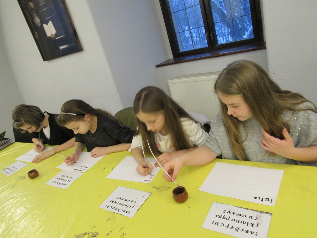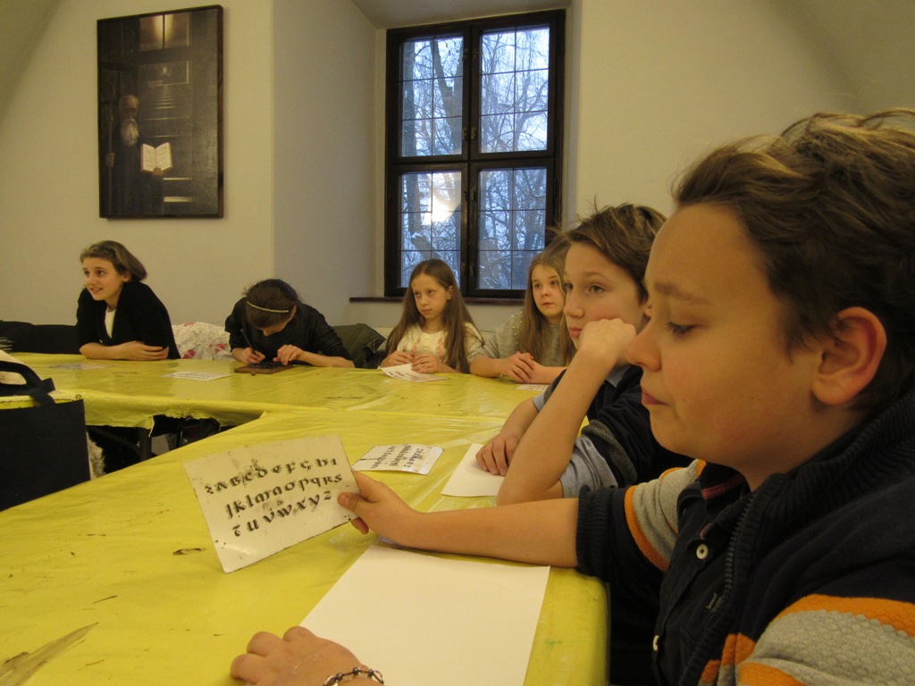 Po zakończeniu gali finałowej laureaci ze starosądeckiej „Dwójki” wraz z przewodnikiem mogli zwiedzić opactwo, a także uczestniczyć w nietypowych warsztatach z kaligrafii, poznając pismo średniowieczne, metody tworzenia iluminacji i rolę średniowiecznych skryptoriów, pisali również na tabliczkach pokrytych woskiem, a także mogli zobaczyć galasy, czyli narośla na dębowych liściach, z których wyciąg używany był do produkcji atramentu. Warsztaty były okazją do tego, aby spróbować własnych umiejętności w pracy średniowiecznego skryby. Uczniowie otrzymali minuskuły, kałamarze i pióra, a potem wzorując się na średniowiecznym piśmie, pisali swoje imiona. Po warsztatach przybliżających pracę średniowiecznego skryby wraz z przewodnikiem udali się jeszcze na spacer klasztornymi korytarzami.