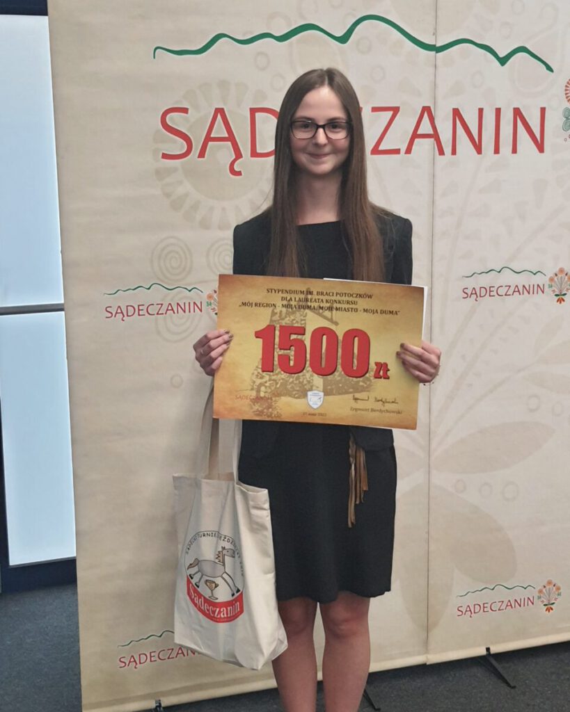 Natalia Szwala, uczennica Liceum Ogólnokształcącego im. Marii Skłodowskiej-Curie w Starym Sączu zwyciężyła w Wojewódzkim Konkursie Historycznym Mój Region – Moja Duma. Moje Miasto – Moja Duma.