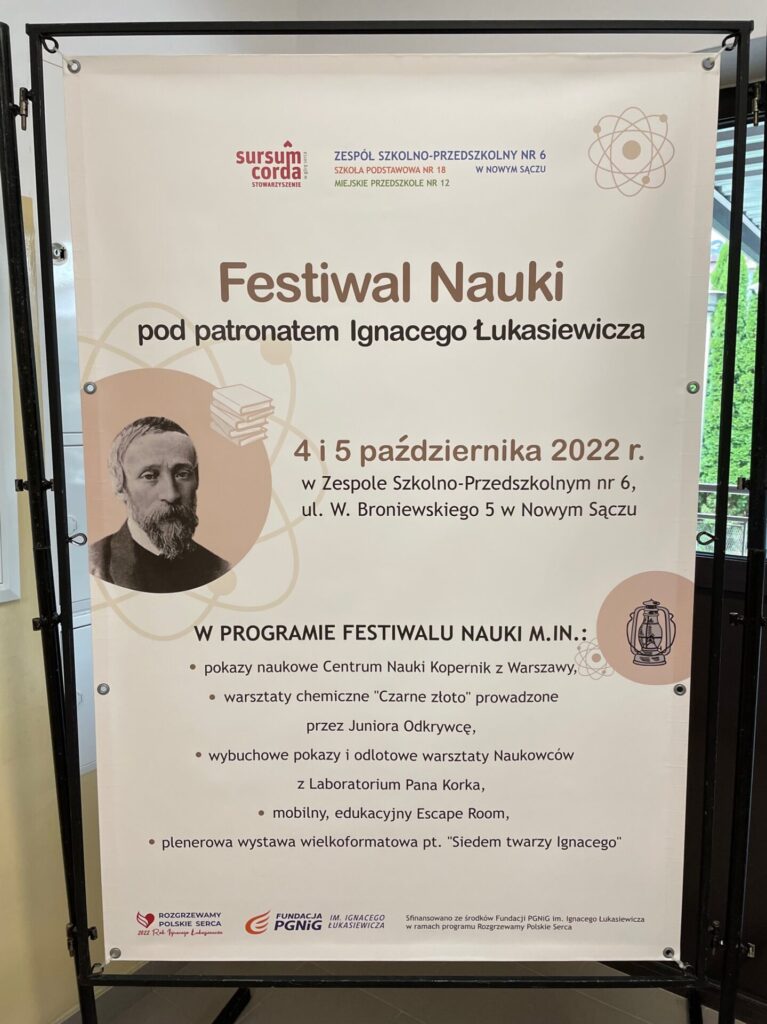 800 uczniów i przedszkolaków z Nowego Sącza odeszło od ławek szkolnych i wzięło w swoje ręce sprawy naukowe. W użyciu są odczynniki, próbówki, instrumenty, a przede wszystkim umysły i ręce, by doświadczalnie poznawać tajniki związane z fizyką i chemią. 56 pokazów i warsztatów przez 2 dni, wycieczka Szkolnego Koła Naukowego Atom przy Szkole Podstawowej nr 18 w Nowym Sączu, to cykl działań, jakie się właśnie odbywają w ramach Festiwalu Nauki pod patronatem Ignacego Łukasiewicza.