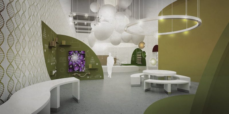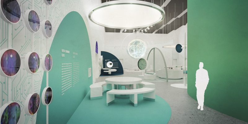 Ściany poszczególnych sekcji wystawy będą dekorowane wyobrażeniami neuronów, helisy DNA, ludzkiej tkanki czy układu scalonego. Różnorodna będzie też ich kolorystyka, zbudowana na odcieniach zieleni, szarości, fioletu, czerwieni i granatu. W centrum każdej sali znajdą się siedziska w formie zjeżdżalni, łąki, planu miasta czy amfiteatru. – To one mają stanowić serce każdej przestrzeni, mają być miejscem odpoczynku, zabawy i pokazów naukowych – mówi Diana Żurek, architekt z Koza Nostra.