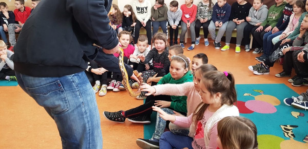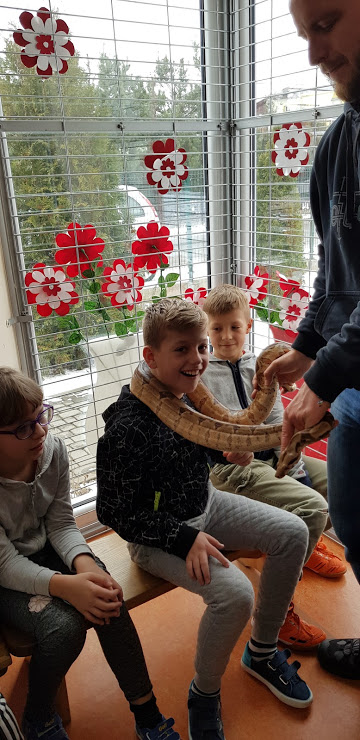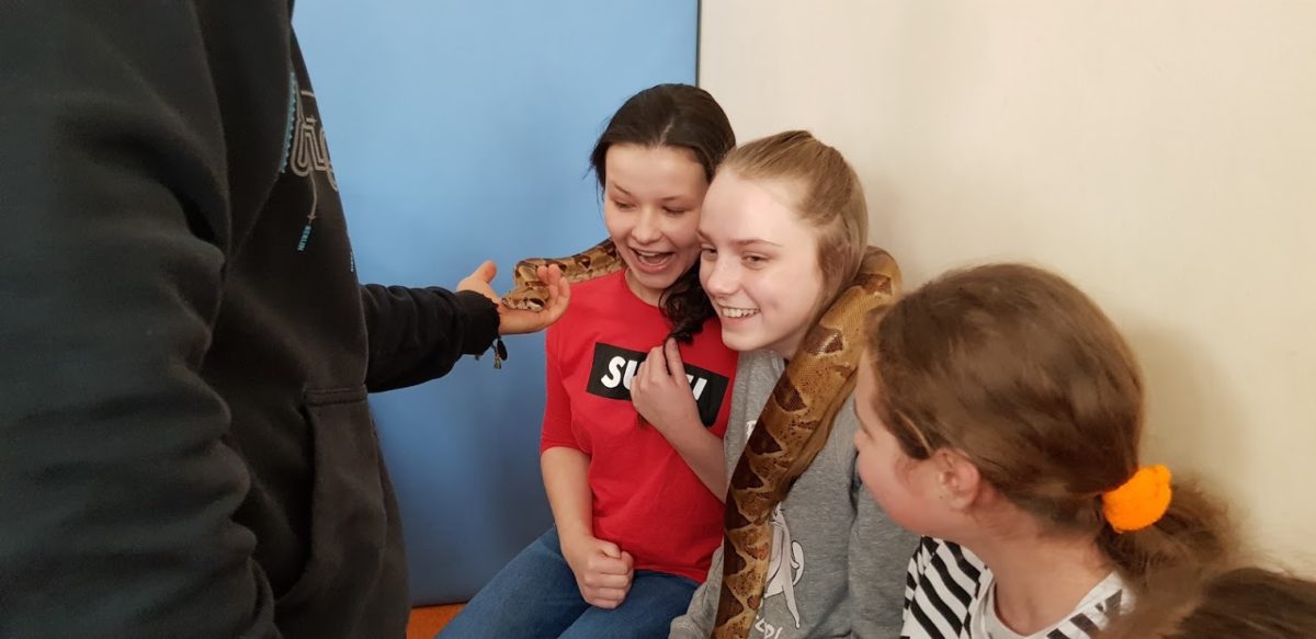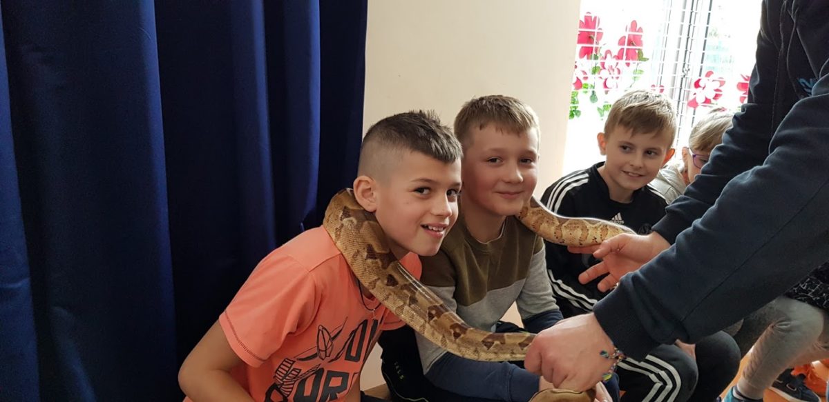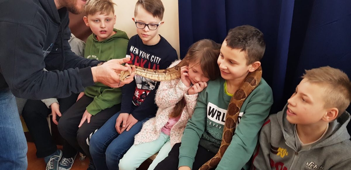 Dzieci dowiedziały się jakie reakcje z naszej strony odbierane są przez węże jako zagrożenie ich życia i w jaki sposób odpowiadają na nie. Zaproszeni goście opowiedzieli o wężach żyjących w Polsce i na Świecie oraz jak zachować się, gdy spotkamy „zdenerwowanego” lub wystraszonego gada.