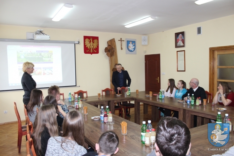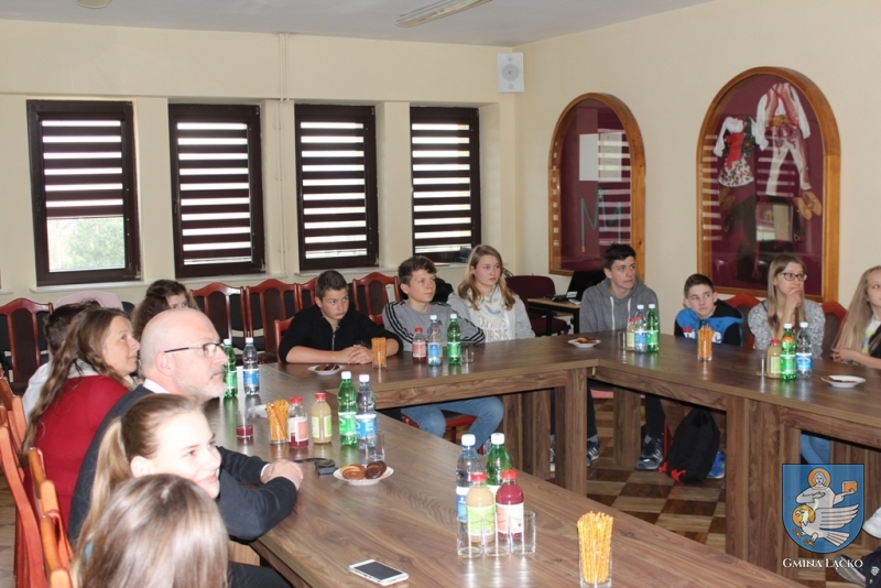 Trzeciego kwietnia uczestnicy wymiany złożyli wizytę w Urzędzie Gminy Łącko i spotkali się z Wójtem – Panem mgr Janem Dziedziną. Gospodarz gminy zapoznał niemieckich gości z atrakcjami naszego regionu. Zaprezentował też różne projekty i przedsięwzięcia, które realizuje gmina, aby poprawić warunki życia jej mieszkańców, wykorzystując jednocześnie naturalne walory tego wyjątkowego miejsca, słynącego z kwitnących sadów oraz urokliwych zakątków.