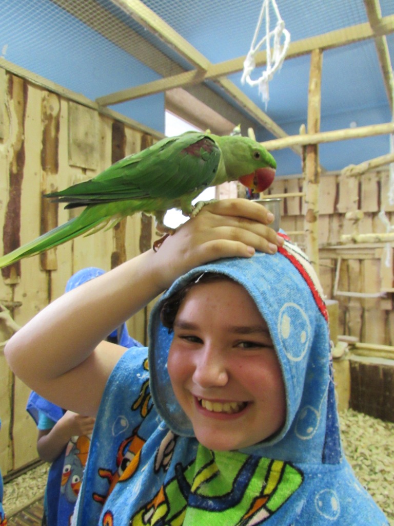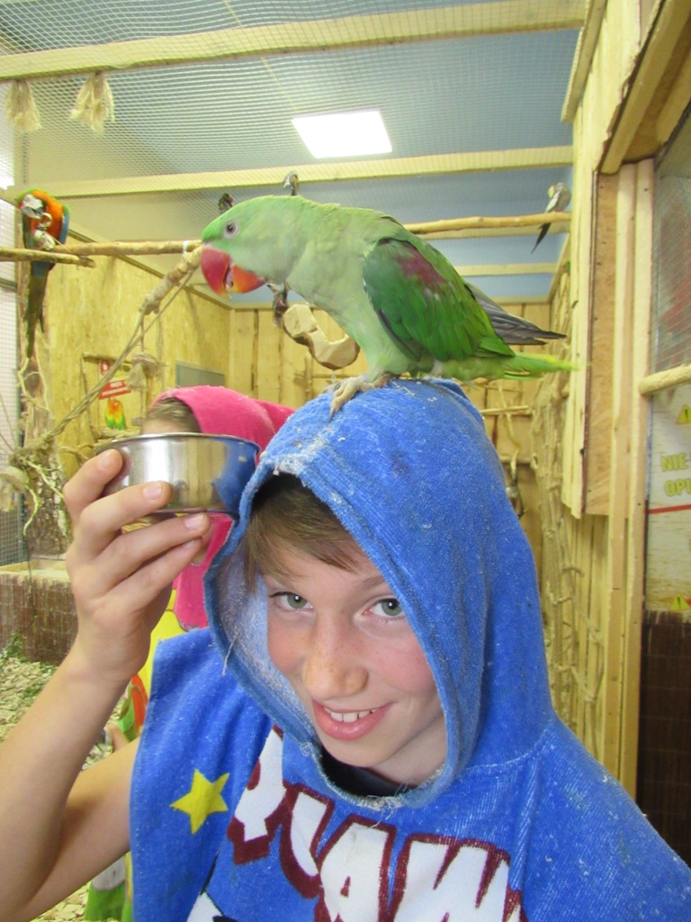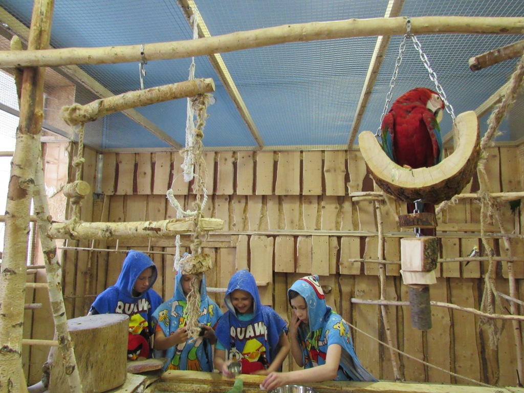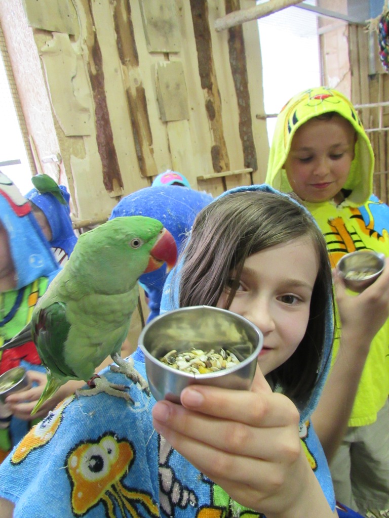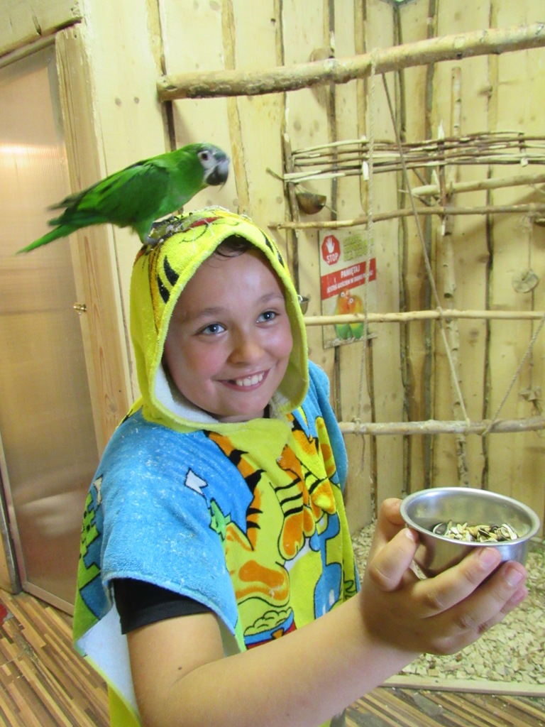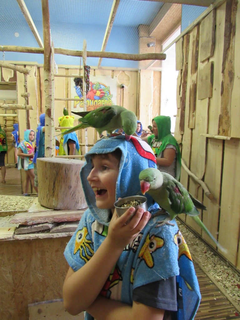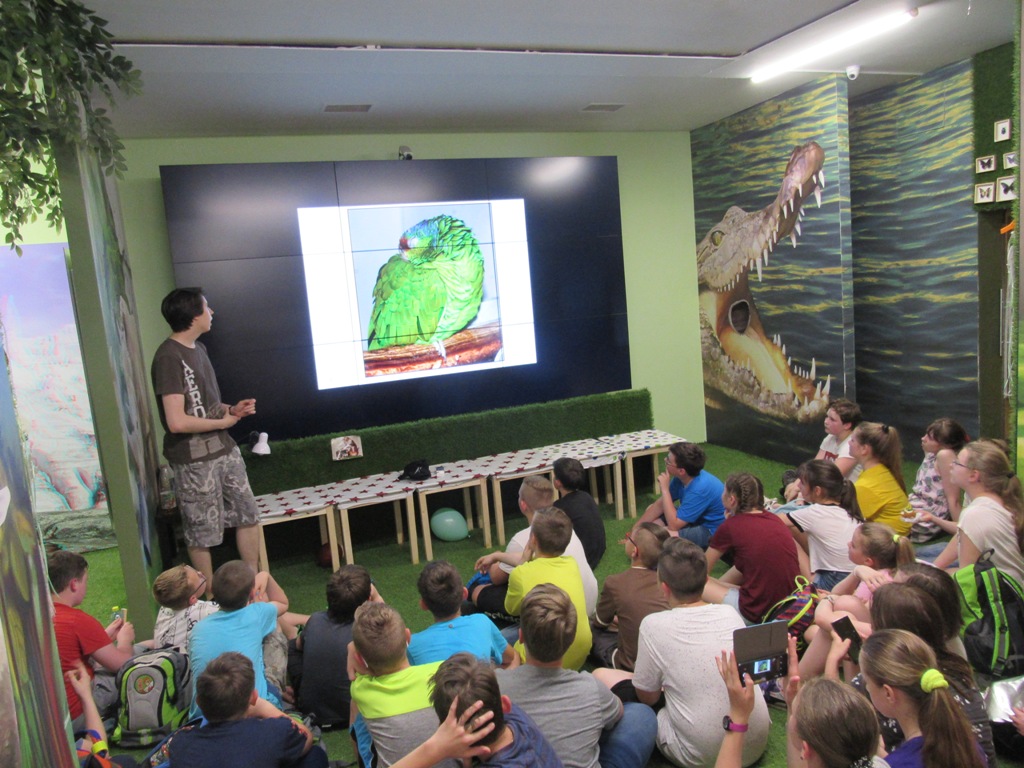 W Papugarni Amazonia czeka na wszystkich niezapomniana przygoda pełna kolorów i dźwięków w towarzystwie egzotycznych papug. Próby nakarmienia papug to nietypowe wspomnienia dla wszystkich. Na koniec zabawa w selfilandii i multimedialna lekcja przyrody „Ptasie historie”, dzięki której uczniowie poznają wiele ciekawostek z życia ptaków: charakterystyczne cechy budowy, różnice i podobieństwa między papugami a innymi ptakami, ubarwienie papug, ptasie zmysły, ptasia mowa, a także ptasie rekordy.