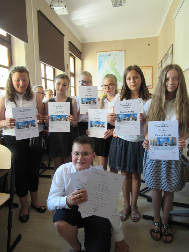 A potem spacerkiem udają się pod Wzgórze Wawelskie i pełni wrażeń bezpiecznie wracają autokarem do Starego Sącza. I wtedy zostają ogłoszeni zwycięzcy porannego autokarowego konkursu wiedzy o Krakowie. I miejsce zdobywa Sebastian Tomecki z klasy Vb, który z uwagi na nieparzystą liczę uczestników wycieczki musiał poradzić sobie sam z konkursowymi pytaniami. Drugie miejsce zostało przyznane Julii Szlęk i Kindze Szlęk z Vb, a trzecie miejsce zdobyły Alicja Pierzga i Weronika Golonka z kl. Va. Podczas Święta Szkoły, 11 czerwca 2019 roku, wszyscy laureaci otrzymali pamiątkowe dyplomy, a Sebastian voucher od Hotelu Wyspiański*** na niezapomniany rodzinny pobyt w Krakowie.