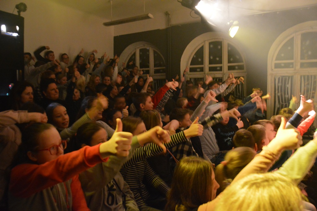 –Niestety bardzo często sami toczymy wojny. Czy to na szkolnym korytarzu, czy na placu zabaw –mówił reżyser spektaklu –Ferenc chciał pokazać, że wojna i obrona swojego terytorium to jedno a druga sprawa to czy potrafimy się zjednoczyć. Są czasy w których nie trzeba używać broni masowego rażenia. Czy jesteśmy w stanie stanąć w obronie wyśmiewanego kolegi i podać mu rękę. Czy mamy na tyle odwagi aby pobawić się z nim w kulki, bo nie stać go na drogi telefon czy tablet? Czy jesteśmy w stanie…