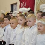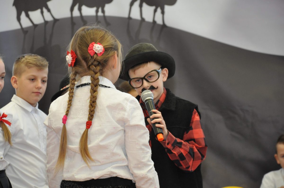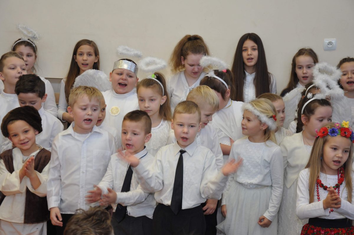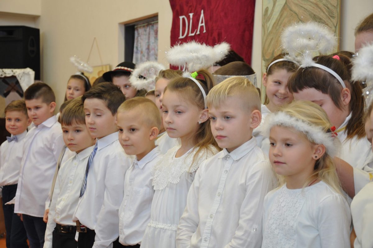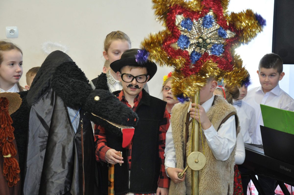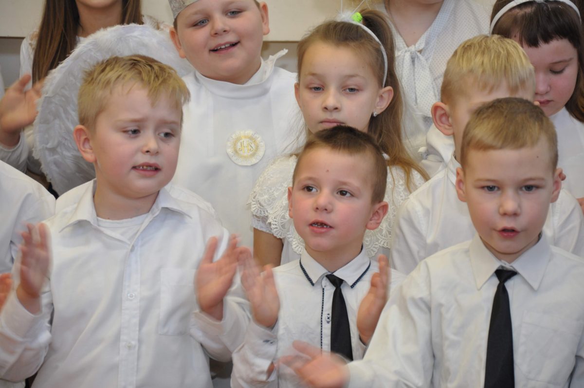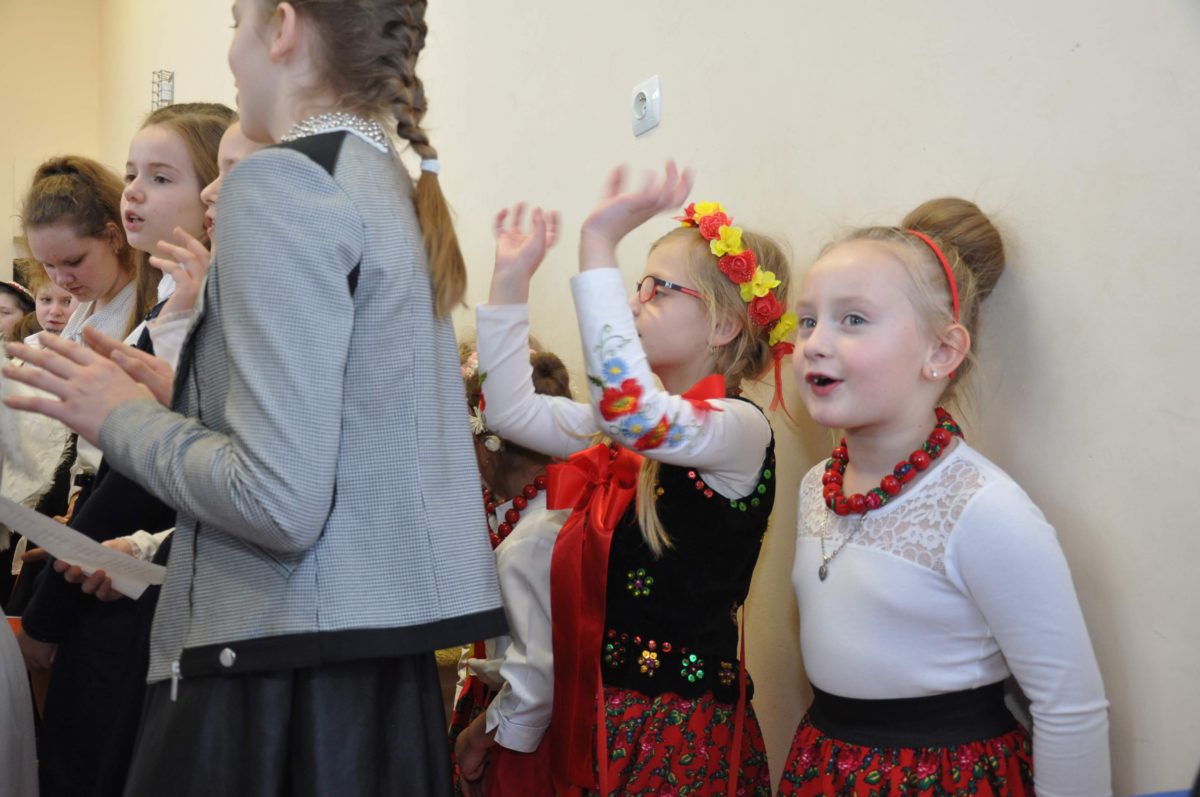Uroczystość rozpoczęła Pani Dyrektor Grażyna, która powitała wszystkich i zaprosiła do wspólnego oglądania występów dzieci. Dzieci z klasy 3, pod przewodnictwem Pani Marty Słaby, przygotowały główną część programu. Następnie klasa 1, pod przewodnictwem Pani Jadwigi Bochniarz, klasa 2, pod przewodnictwem Pani Anety Lompart, klasa 5, pod przewodnictwem Pani Moniki Wojtaszek i oddział zerówki, pod przewodnictwem Pani Doroty Ogorzały zaśpiewały w ramach koncertu życzeń piękne kolędy i pastorałki z życzeniami dla Babć i Dziadków. Na wyróżnienie zasługuję Lena, która wykonała piękną pastorałkę oraz Oliwier, który wspaniale zagrał na akordeonie 100 lat dla zaproszonych gości. Po występach dzieci podchodziły do swoich dziadków i babć, składali im życzenia i wręczali przygotowane przez Panią Justynę Sejud upominki. Po życzeniach wszyscy oglądnęli wysęp Koła Gospodyń Wiejskich, które przygotowało występ pt. Gość Oczekiwany. Pani Dyrektor przekazał występującym upominki i podziękowało Kołu za ich trud i zaangażowanie na rzecz szkoły.