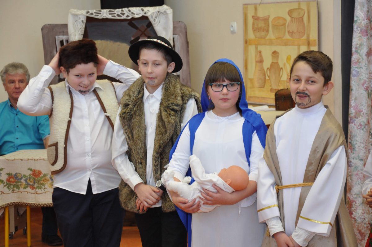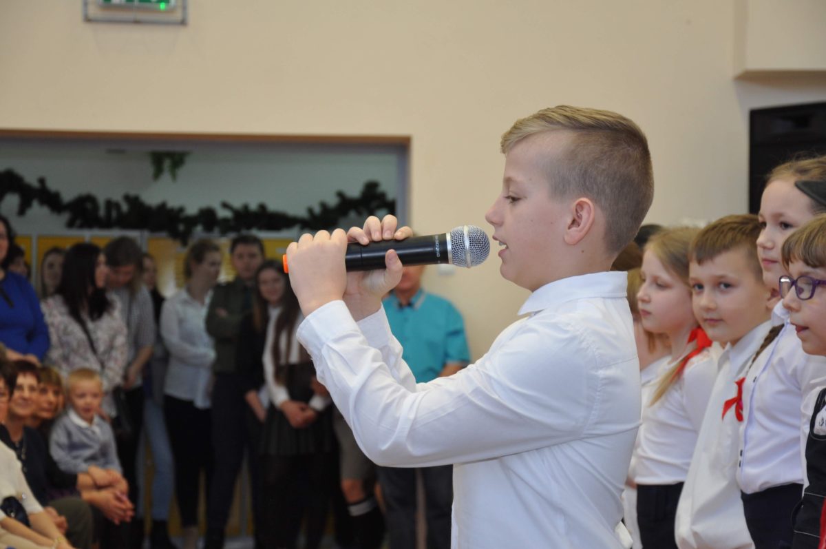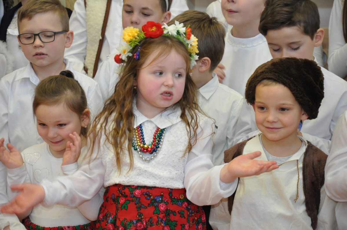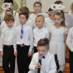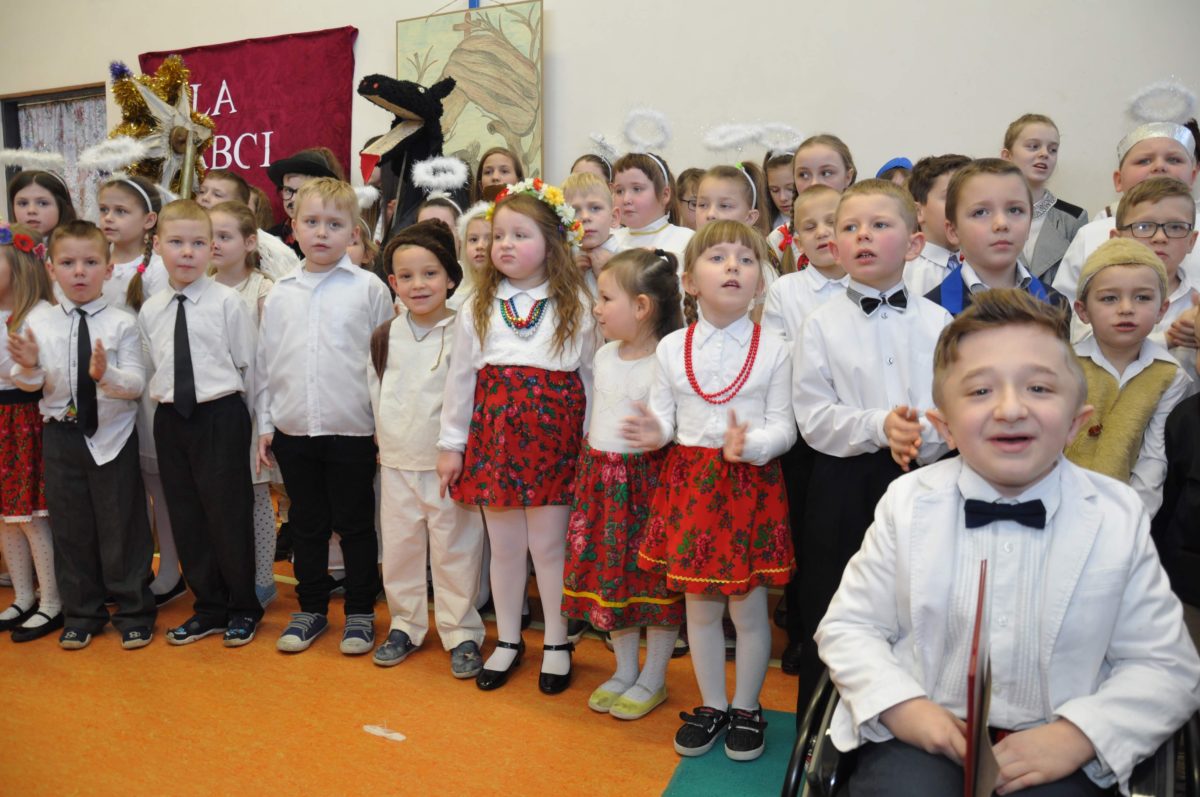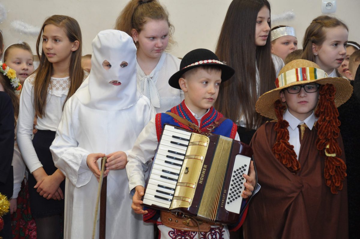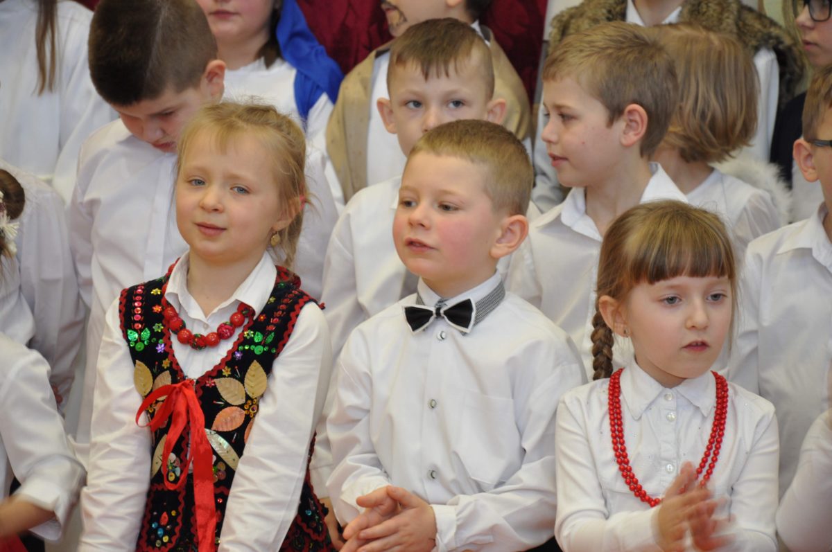 Uroczystość rozpoczęła Pani Dyrektor Grażyna, która powitała wszystkich i zaprosiła do wspólnego oglądania występów dzieci. Dzieci z klasy 3, pod przewodnictwem Pani Marty Słaby, przygotowały główną część programu. Następnie klasa 1, pod przewodnictwem Pani Jadwigi Bochniarz, klasa 2, pod przewodnictwem Pani Anety Lompart, klasa 5, pod przewodnictwem Pani Moniki Wojtaszek i oddział zerówki, pod przewodnictwem Pani Doroty Ogorzały zaśpiewały w ramach koncertu życzeń piękne kolędy i pastorałki z życzeniami dla Babć i Dziadków. Na wyróżnienie zasługuję Lena, która wykonała piękną pastorałkę oraz Oliwier, który wspaniale zagrał na akordeonie 100 lat dla zaproszonych gości. Po występach dzieci podchodziły do swoich dziadków i babć, składali im życzenia i wręczali przygotowane przez Panią Justynę Sejud upominki. Po życzeniach wszyscy oglądnęli wysęp Koła Gospodyń Wiejskich, które przygotowało występ pt. Gość Oczekiwany. Pani Dyrektor przekazał występującym upominki i podziękowało Kołu za ich trud i zaangażowanie na rzecz szkoły.
