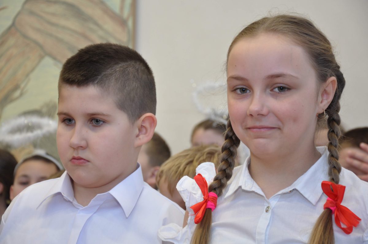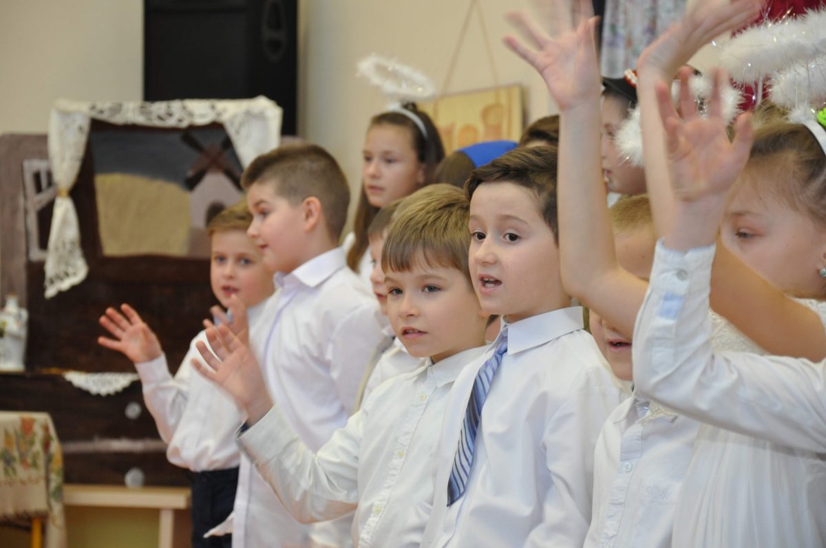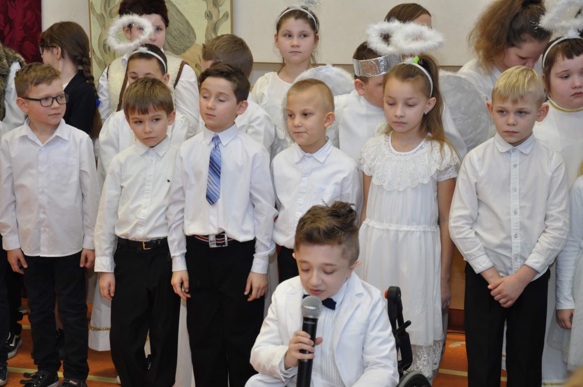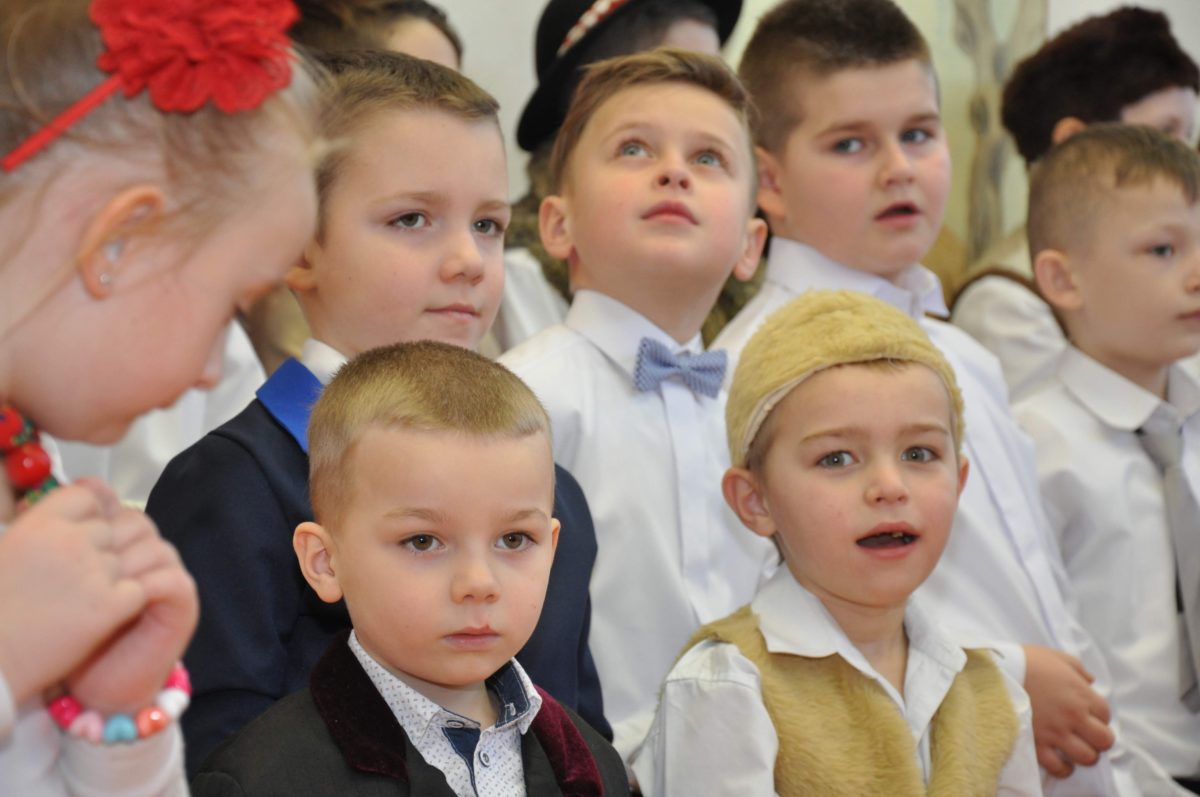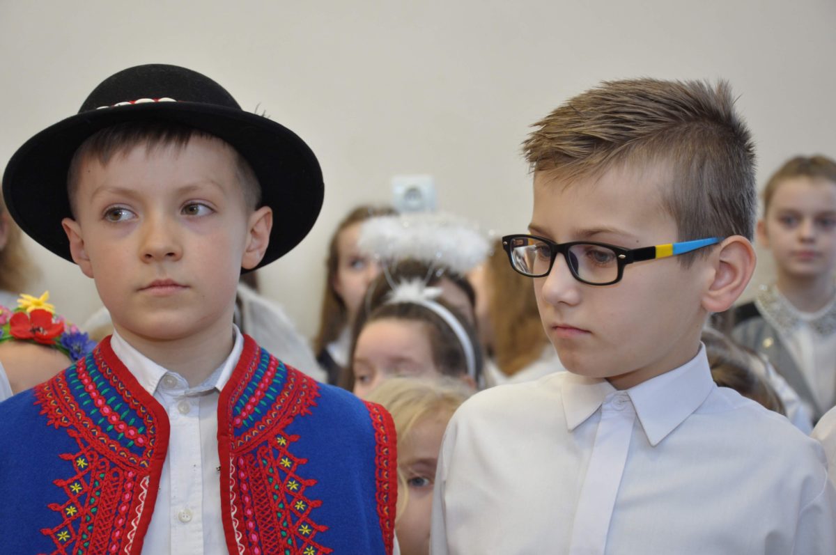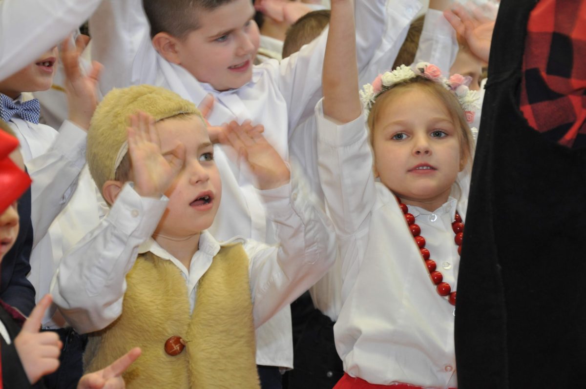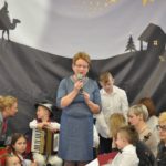 Uroczystość rozpoczęła Pani Dyrektor Grażyna, która powitała wszystkich i zaprosiła do wspólnego oglądania występów dzieci. Dzieci z klasy 3, pod przewodnictwem Pani Marty Słaby, przygotowały główną część programu. Następnie klasa 1, pod przewodnictwem Pani Jadwigi Bochniarz, klasa 2, pod przewodnictwem Pani Anety Lompart, klasa 5, pod przewodnictwem Pani Moniki Wojtaszek i oddział zerówki, pod przewodnictwem Pani Doroty Ogorzały zaśpiewały w ramach koncertu życzeń piękne kolędy i pastorałki z życzeniami dla Babć i Dziadków. Na wyróżnienie zasługuję Lena, która wykonała piękną pastorałkę oraz Oliwier, który wspaniale zagrał na akordeonie 100 lat dla zaproszonych gości. Po występach dzieci podchodziły do swoich dziadków i babć, składali im życzenia i wręczali przygotowane przez Panią Justynę Sejud upominki. Po życzeniach wszyscy oglądnęli wysęp Koła Gospodyń Wiejskich, które przygotowało występ pt. Gość Oczekiwany. Pani Dyrektor przekazał występującym upominki i podziękowało Kołu za ich trud i zaangażowanie na rzecz szkoły.