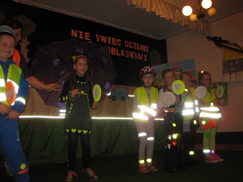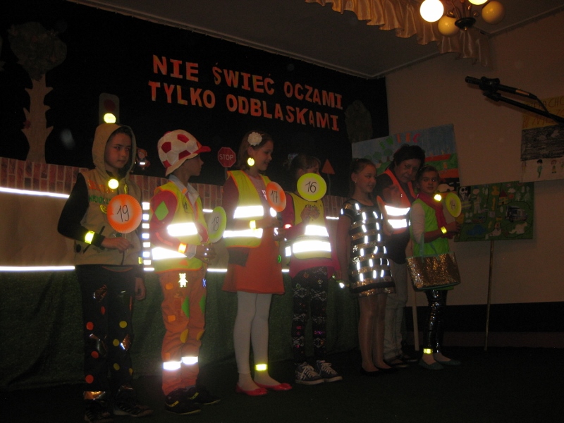 Podsumowaniem działań związanych z bezpieczeństwem na drodze był festyn szkolny „Nie świeć oczami, tylko odblaskami”, który odbył się 19 października 2015 roku. Uczniowie przygotowali program artystyczny. Oprócz wierszy i piosenek zaprezentowano modę odblaskową. Wręczono nagrody w konkursach plastycznym, wiedzy i modowym. Nagrody można było też wygrać grając w gry planszowe i komputerowe, w których należało wykazać się znajomością wiedzy o ruchu drogowym.