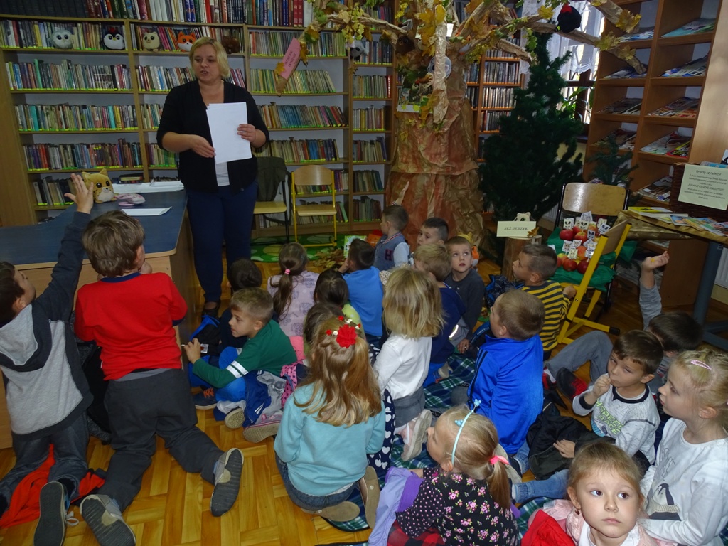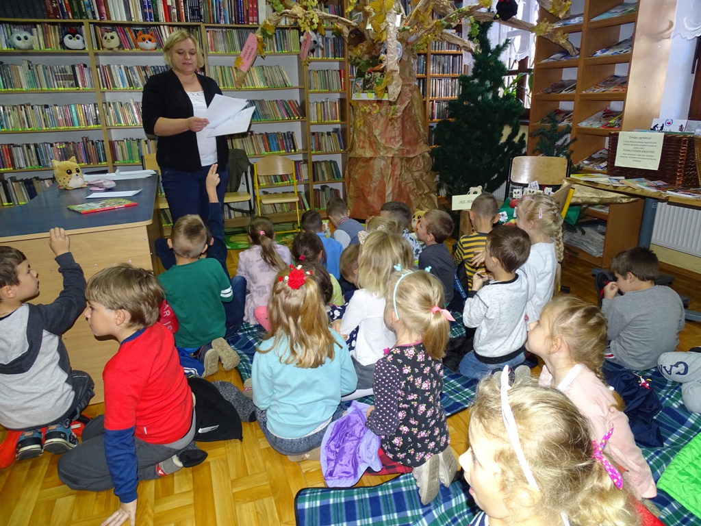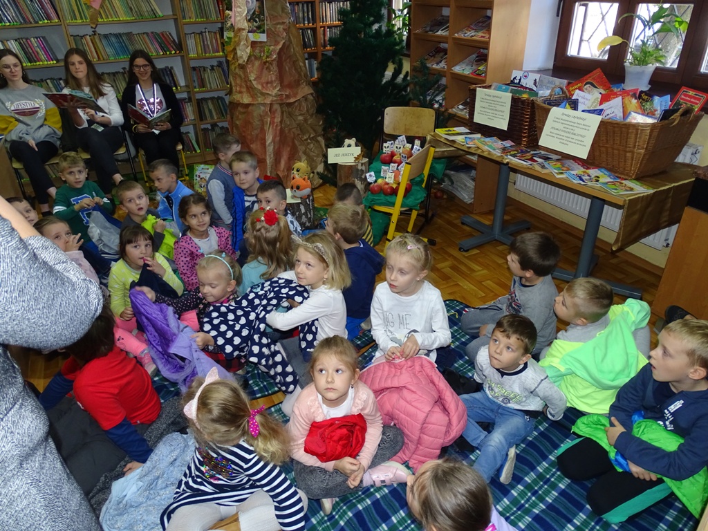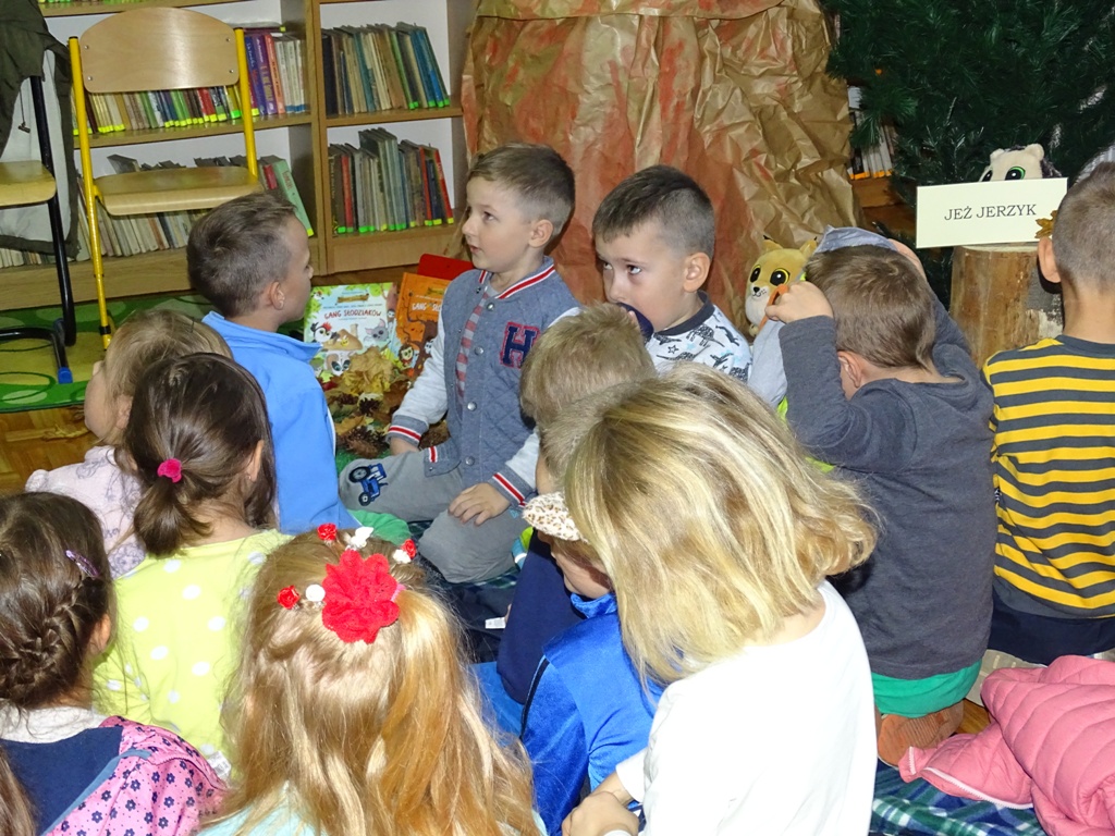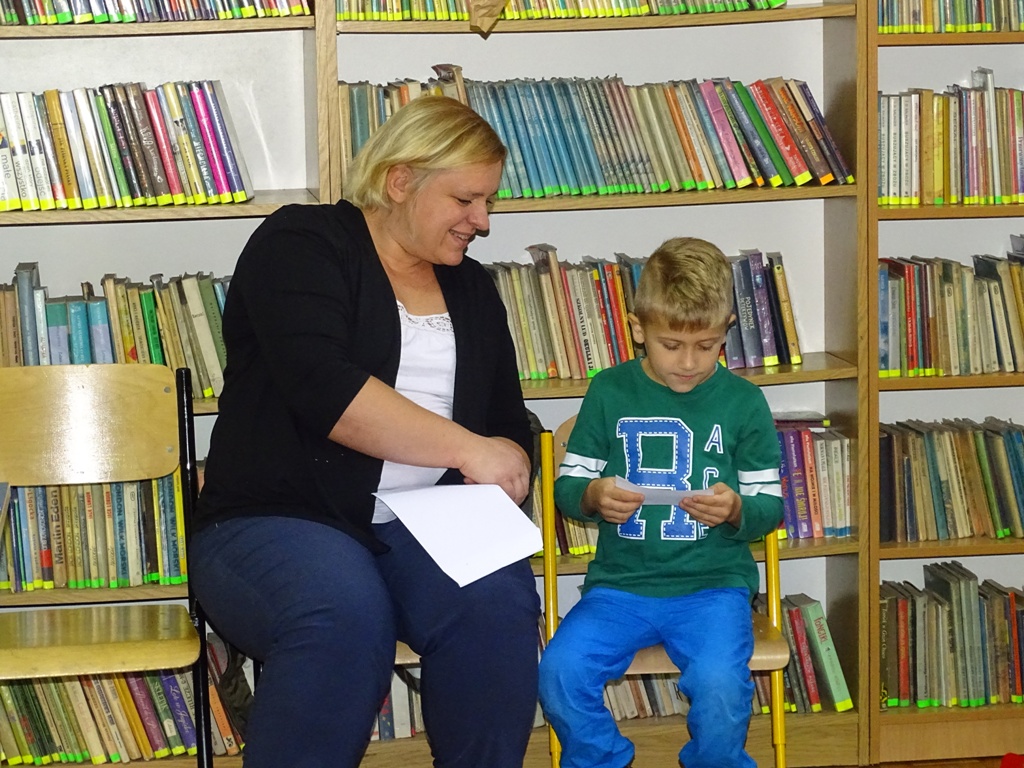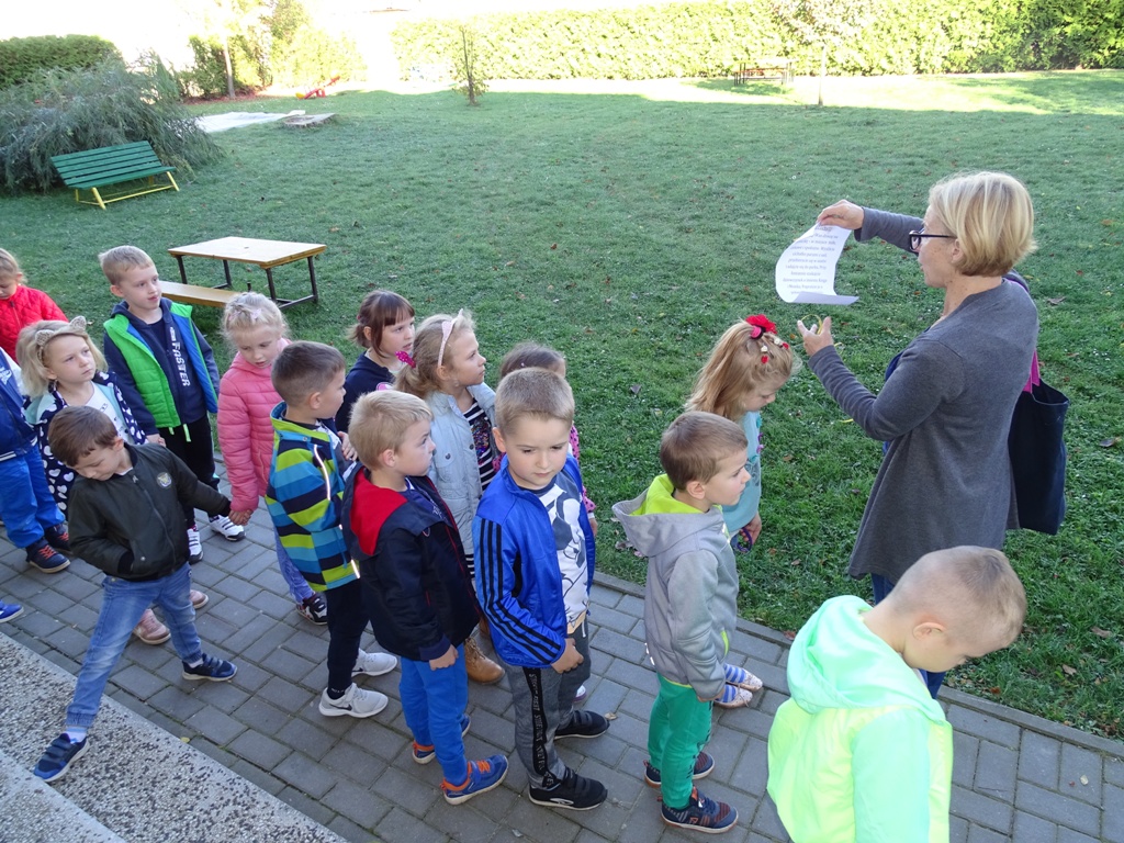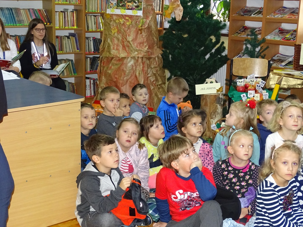 17 października 2019 roku na „słodziakową” polanę organizatorzy zaprosili najstarszą grupę przedszkolaków z Niepublicznego Przedszkola „Pszczółka Maja”. Wolontariuszki ze Szkoły Podstawowej nr 2 bardzo „utrudniły” przedszkolakom dotarcie do celu czyli do biblioteki szkolnej. Zostawiane między innymi: w parku przy fontannie, w donicy z iglakiem przy Szkole Muzycznej zadania, znaki i tajemnicze listy wskazywały drogę, a jednocześnie dostarczyły najmłodszym dodatkowych emocji. Były ważnym elementem ćwiczącym uwagę, spostrzegawczość oraz logiczne myślenie. Atrakcyjnym zakończeniem podchodów było pokonanie „słodziakowej przeszkody”, otwarcie bramy i dotarcie do miejsca, skąd dobiegały dźwięki muzyki czyli do biblioteki – na polankę pod Magiczne Drzewo. Tu czekały na przedszkolaków zagadki na temat jesieni, fragmenty książki „Gang Słodziaków – przyjaciele mogą wiele, czyli magia z leśnej polany” i najważniejsze konkurs głośnego czytania. Przedszkolaki kolejny raz udowodniły, że czytanie książek to dla nich sprawa bardzo ważna. Mimo lekkiego stresu, losowały przygotowane fragmenty książki i pięknie je odczytywały. Mistrzami Głośnego Czytania zostali: Justyna Tokarczyk i Artur Zańko. Mamy nadzieję, że wszelkie akcje, w których bohaterką jest książka, przyczynią się do budowania nawyku codziennego czytania u najmłodszych i zaowocują ich dużą aktywnością czytelniczą w przyszłości.
