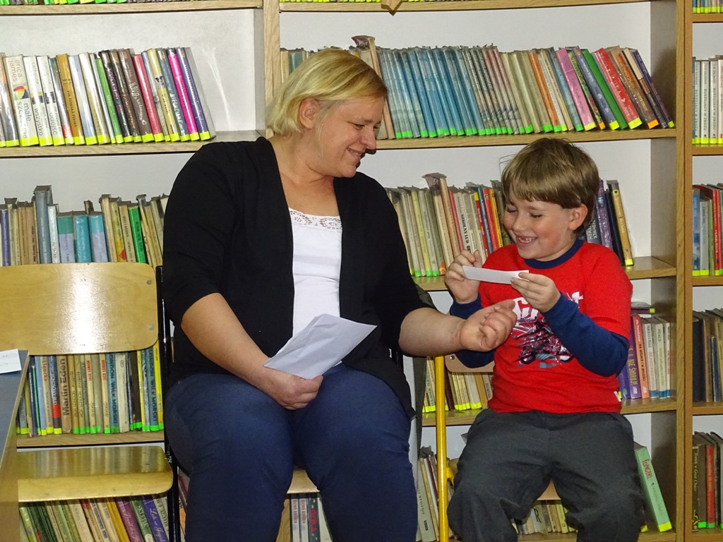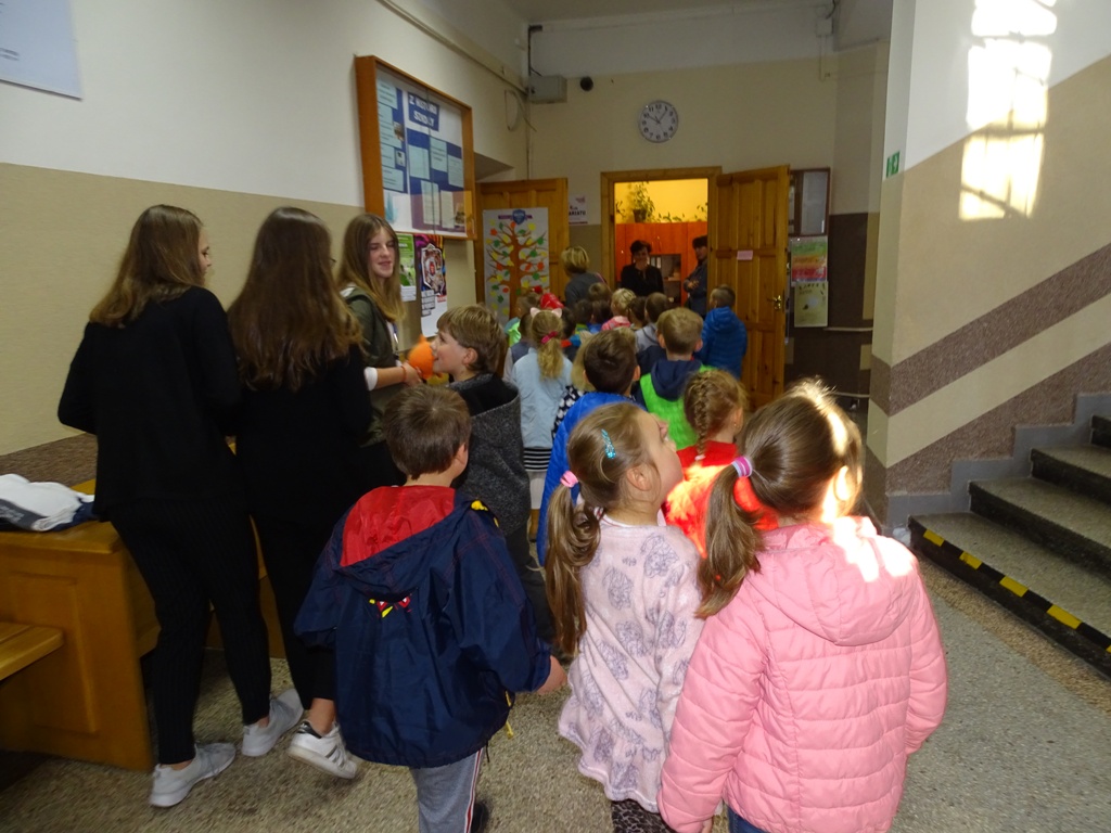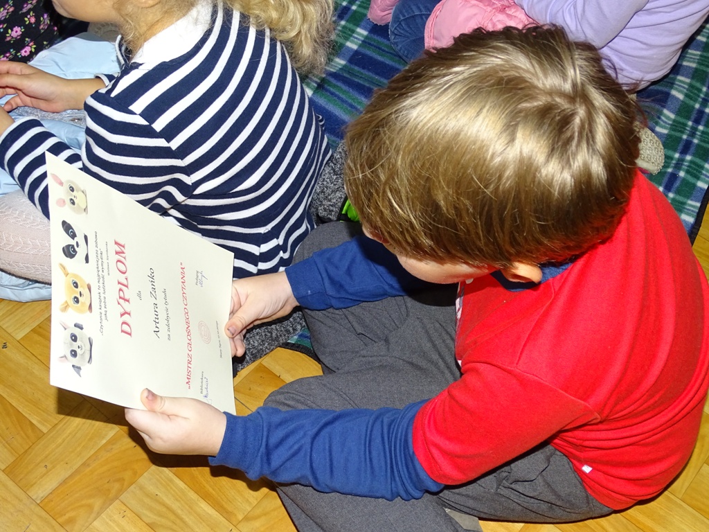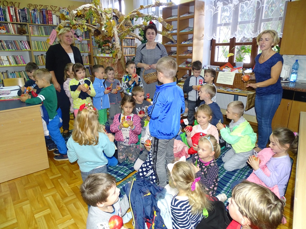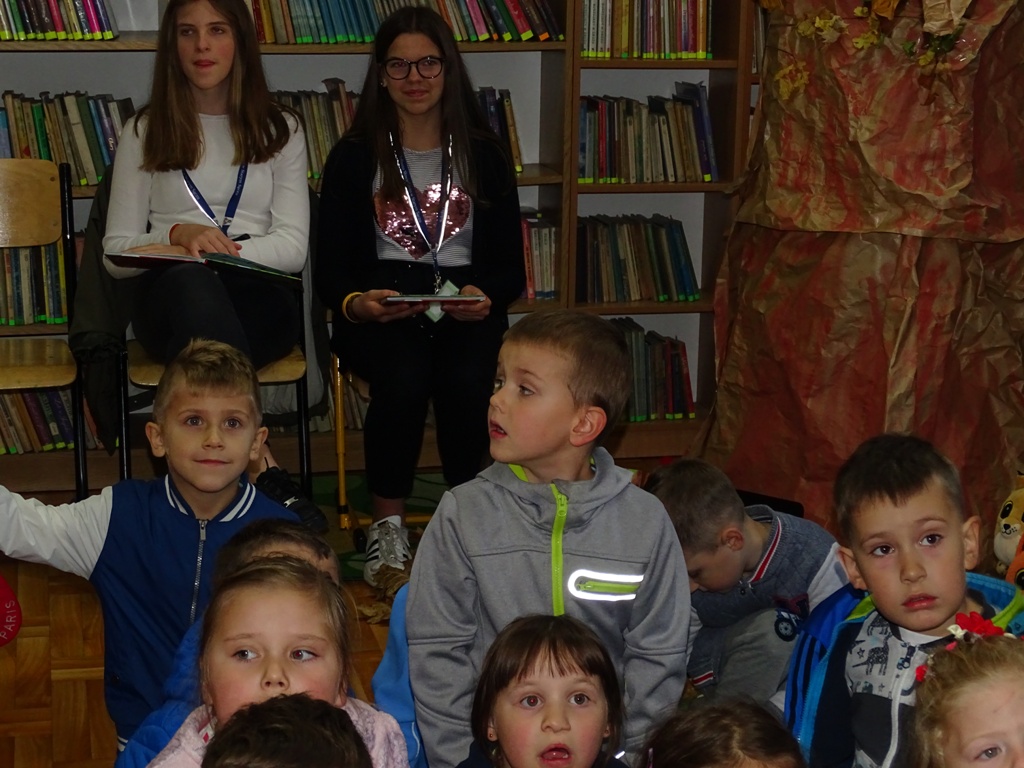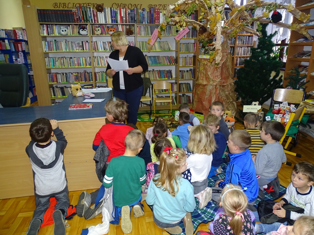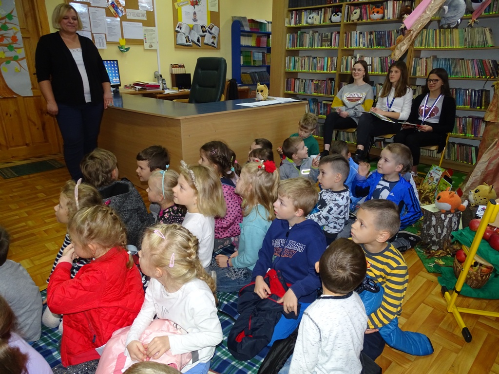 17 października 2019 roku na „słodziakową” polanę organizatorzy zaprosili najstarszą grupę przedszkolaków z Niepublicznego Przedszkola „Pszczółka Maja”. Wolontariuszki ze Szkoły Podstawowej nr 2 bardzo „utrudniły” przedszkolakom dotarcie do celu czyli do biblioteki szkolnej. Zostawiane między innymi: w parku przy fontannie, w donicy z iglakiem przy Szkole Muzycznej zadania, znaki i tajemnicze listy wskazywały drogę, a jednocześnie dostarczyły najmłodszym dodatkowych emocji. Były ważnym elementem ćwiczącym uwagę, spostrzegawczość oraz logiczne myślenie. Atrakcyjnym zakończeniem podchodów było pokonanie „słodziakowej przeszkody”, otwarcie bramy i dotarcie do miejsca, skąd dobiegały dźwięki muzyki czyli do biblioteki – na polankę pod Magiczne Drzewo. Tu czekały na przedszkolaków zagadki na temat jesieni, fragmenty książki „Gang Słodziaków – przyjaciele mogą wiele, czyli magia z leśnej polany” i najważniejsze konkurs głośnego czytania. Przedszkolaki kolejny raz udowodniły, że czytanie książek to dla nich sprawa bardzo ważna. Mimo lekkiego stresu, losowały przygotowane fragmenty książki i pięknie je odczytywały. Mistrzami Głośnego Czytania zostali: Justyna Tokarczyk i Artur Zańko. Mamy nadzieję, że wszelkie akcje, w których bohaterką jest książka, przyczynią się do budowania nawyku codziennego czytania u najmłodszych i zaowocują ich dużą aktywnością czytelniczą w przyszłości.