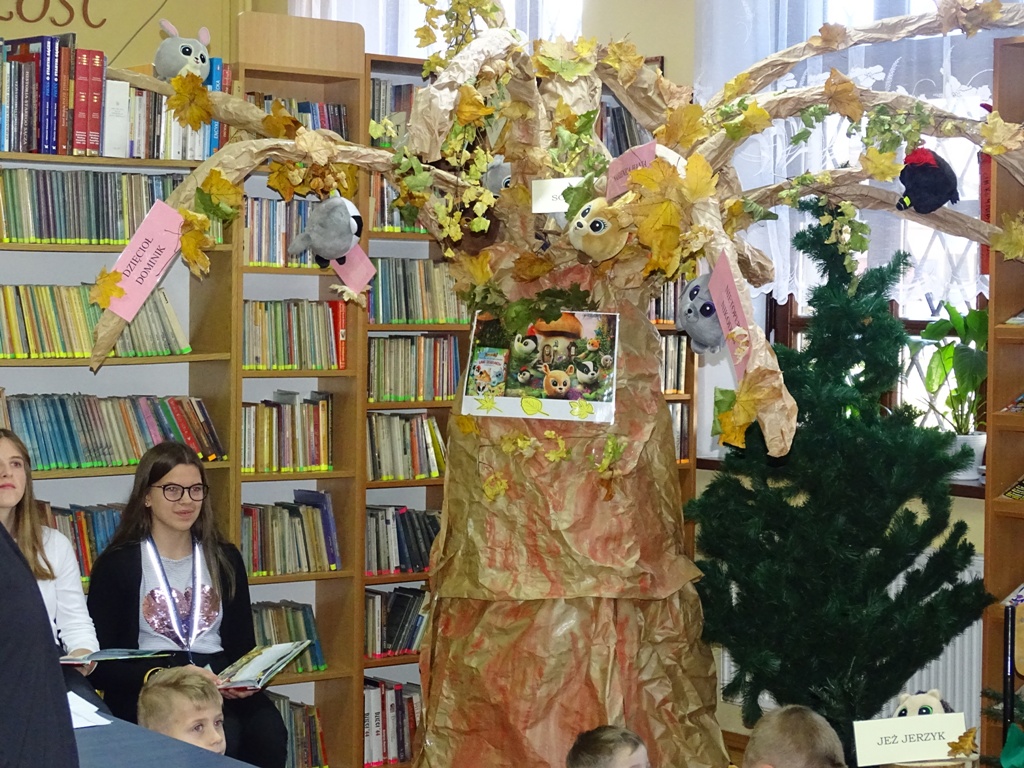 Szczególnej ocenie podlegało Magiczne Drzewo Słodziaków wykonane przez uczniów przy pomocy wychowawców klas młodszych. „Leśna, biblioteczna polana” z pięknym, rozłożystym drzewem mieniącym się kolorowymi, jesiennymi liśćmi, a także szyszki, kasztany, żołędzie, najprawdziwsze pniaczki stanowiły oryginalną dekorację i zapraszały uczniów klas pierwszych i drugich do udziału w obchodach Dnia Głośnego Czytania z Gangiem Słodziaków. Najpiękniej czytające dzieci uzyskiwały tytuł Mistrza Głośnego Czytania potwierdzony pamiątkowym dyplomem. Wszystkie dzieci pod magicznym drzewem zbierały zdrowe jabłuszka na drugie śniadanie i słodkości – lizaczki z wizerunkiem słodziaka oraz zakładki do książek.