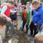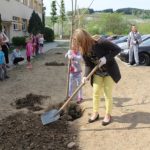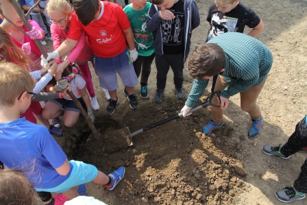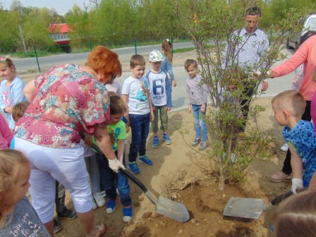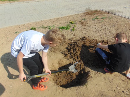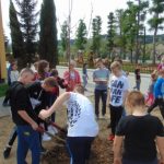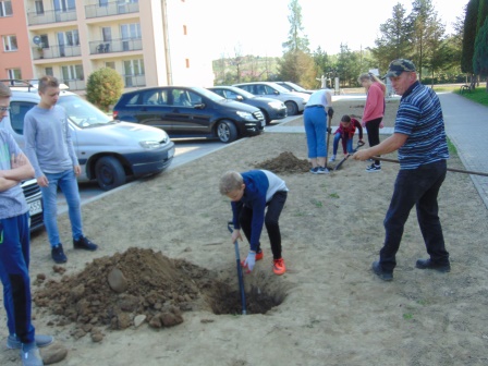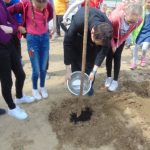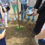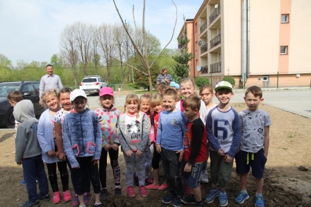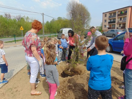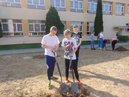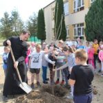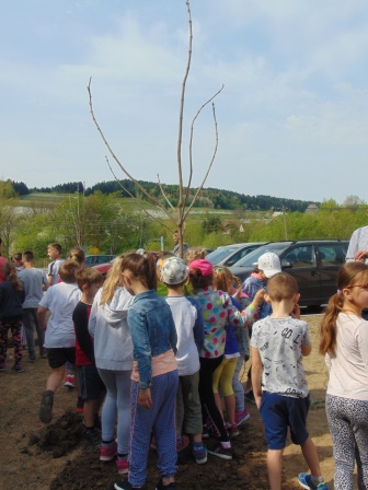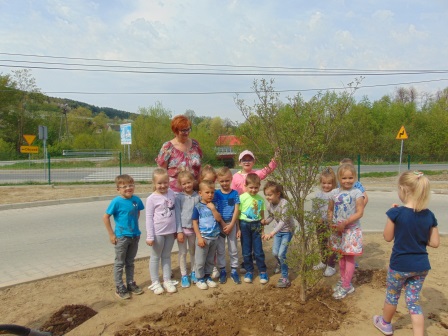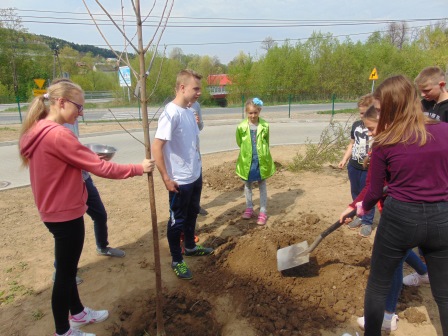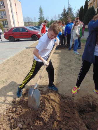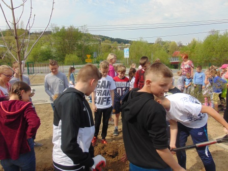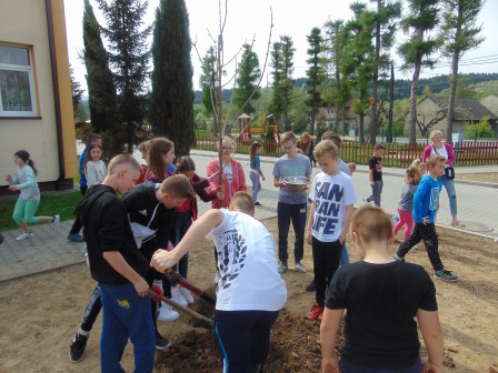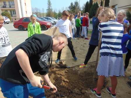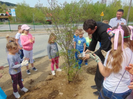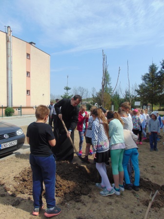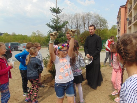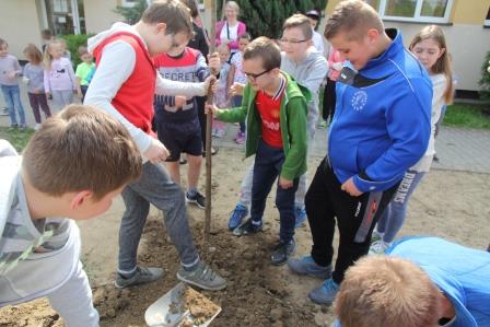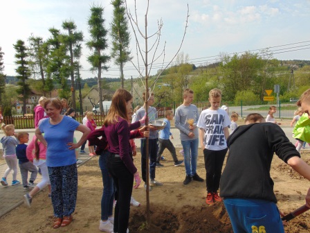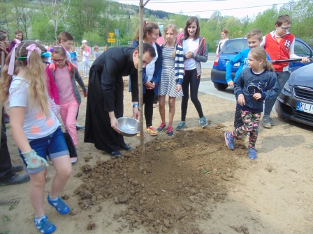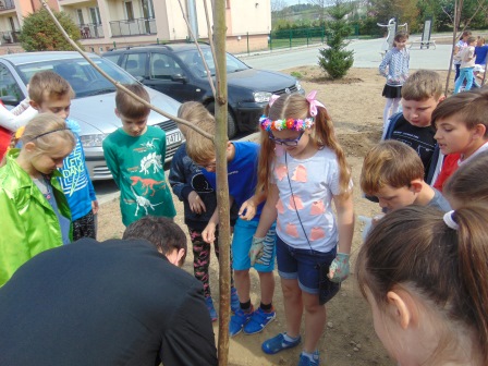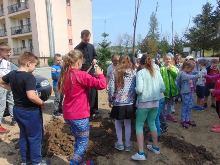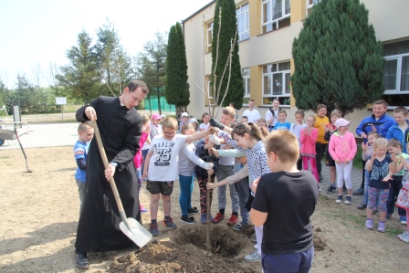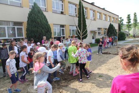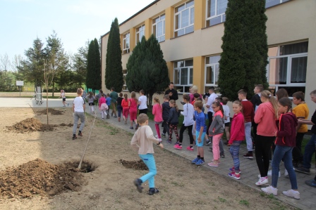 Druga część święta miała bardziej osobisty dla każdej klasy charakter. Zakupione zostały do szkoły drzewka, które uczniowie posadzili wokół szkoły. Pieniądze na zakup drzewek przekazali uczniowie wraz z rodzicami oraz Radą Rodziców. Każda klasa otrzymała własne drzewko, któremu nadała nazwę. Na zakończenie akademii każda klasa prezentowała zagadkę, wiersz lub piosenkę o swoim drzewku. Następnie wszyscy uczniowie wraz z nauczycielami wzięli aktywny udział w sadzeniu drzew. Wykopy pod drzewa zostały przygotowane przez uczniów klasy VII oraz Pana Macieja Błaszczyka (Przewodniczącego Rady Rodziców) ora Pana Janusza Kurowskiego. Sadzenie drzew odbywało się pod okiem Pani Agnieszki Wojnarowskiej – architektki krajobrazu. Najpierw zasadzono jodłę koreańską – drzewko Rady Rodziców i na wniosek dzieci nazwano je „RADZIO”. Następnie klasa I zasadziła „ZEFIRKA”, klasa III – „ANASTAZJĘ”, klasa IV – „ROBERTA”, klasa V – „JANUSZA”, klasa VI – „HALINĘ” i klasa VII „PIOTRUSIA”. Wszystkie te drzewka to surmie. Na koniec klasa 0 zasadziła „RUBINA” – przepiękny krzak derenia. Po zasadzeniu drzewek Ks. Robert Maślak poświęcił je, życząc, by rosły „Panu Bogu na chwałę, a nam na pożytek”. Sadzenie zakończyli uczniowie klasy siódmej, podlewając je.