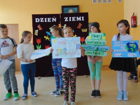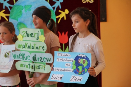 Dzień Ziemi obchodzony 22 kwietnia, to dzień kiedy wszyscy ludzie, którym nie są obojętne losy Ziemi łączą swoje siły po to aby uświadomić wszystkim, że o dary ziemi należy dbać i szanować środowisko. I tak też było 23 kwietnia bieżącego roku w Szkole Podstawowej im. Mieczysława Wieczorka w Olszanie. Wszyscy uczniowie szkoły wzięli udział w uroczystych obchodach Dniu Ziemi. Założeniami dzisiejszego święta było budzenie wśród dzieci i młodzieży współodpowiedzialności za stan środowiska w przyszłości, poczucia troski o stan czystości najbliższego otoczenia oraz wychowanie w duchu miłości i szacunku do przyrody. Organizatorami Dnia Ziemi w Olszanie byli: Dyrektor Szkoły, Rada Rodziców, Państwo Agnieszka i Piotr Wojnarowscy wraz z firmą Park – M w Brzeznej, którzy dołożyli starań w pozyskaniu drzewek dla każdej klasy oraz zapewnili transport drzew do szkoły. Najpierw odbyła się akademia przygotowana przez uczniów kl. IV i VI pod kierownictwem Pani mgr Sylwii Paluch, nauczyciela biologii i przyrody. Z przedstawianych tekstów wszyscy dowiedzieli się, jak istotną sprawą dla zachowania przyrody jest segregacja śmieci, recykling i szeroko rozumiana ochrona przyrody.