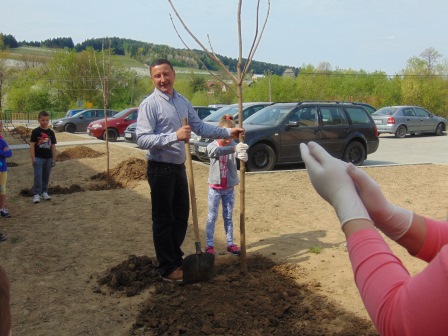 Dyrektor Szkoły składa najserdeczniejsze podziękowania wszystkim rodzicom za zaangażowanie się w akcję sadzenia drzew wokół szkoły, zebranie pieniędzy na tenże cel oraz wszystkim zaangażowanym, którzy poświęcili swój czas aktywnie uczestnicząc w uroczystościach zazielenienia terenu wokół szkoły.