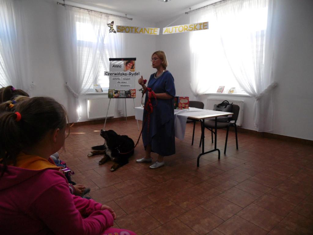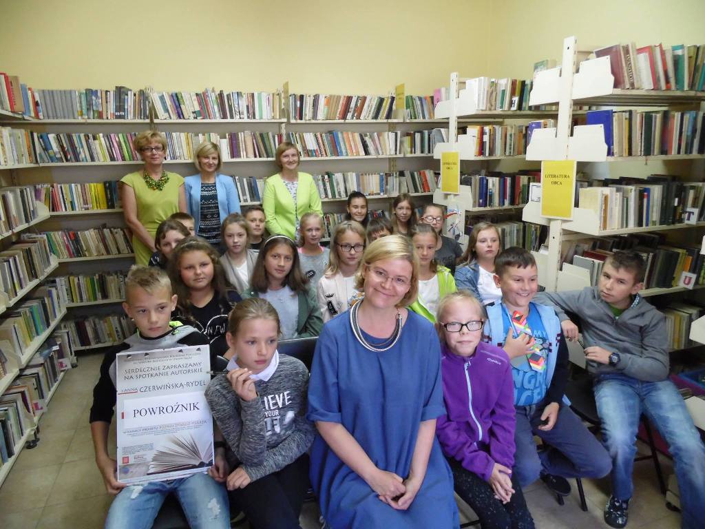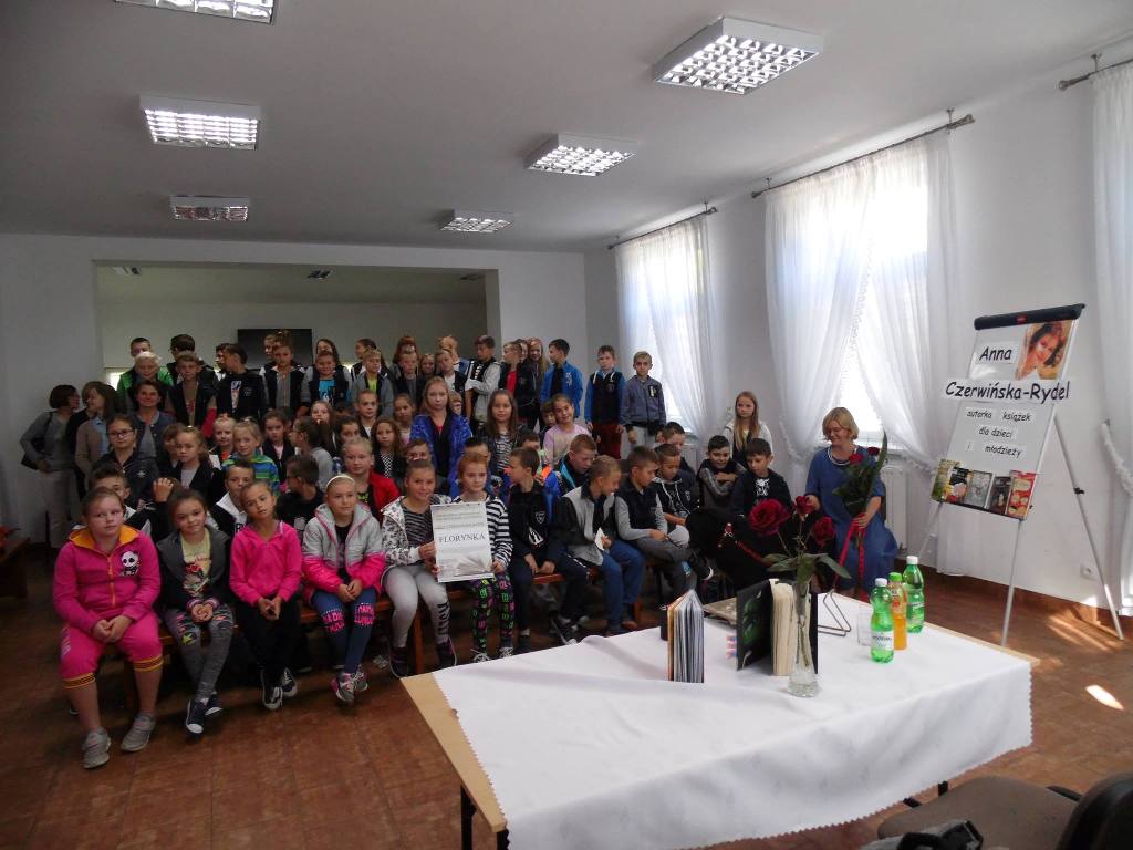 W pierwszym cyklu spotkań w dniach od 11 do 15 września 2017 roku gościliśmy na 10 spotkaniach autorskich Panią Annę Czerwińską–Rydel, autorkę książek dla dzieci i młodzieży. Na spotkaniach z młodym czytelnikiem najwięcej uwagi poświęciła książkom biograficznym i historycznym, ponieważ jest pomysłodawczynią i mistrzynią w pisaniu biografii dla dzieci o wielkich Polakach: Henryku Sienkiewiczu, Kornelu Makuszyńskim, Marii Curie-Skłodowskiej, Elżbiecie Heweliusz i innych. O swoich bohaterach opowiadała ciekawie, barwnie i z dowcipem. Dodatkową atrakcją podczas spotkań była Muza, psia asystentka z którą pisarka przyjechała z Gdańska, jej obecność stała się pretekstem do mówienia o psach sławnych pisarzy.