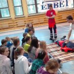Na początku dzieci uważnie wysłuchały jak istotne są pierwsze chwile w sytuacji zagrożenia zdrowia lub życia oraz jak należy się w takiej sytuacji zachować. Przy okazji uczniowie przeszli krótki kurs profesjonalnego wzywania pomocy oraz rzetelnego przekazywania informacji dotyczących nieszczęśliwego zdarzenia. Następnie, pod czujnym okiem specjalistów, każdy z uczestników mógł wykorzystać zdobyte informacje podczas ćwiczeń z użyciem fantomów oraz specjalistycznego sprzętu medycznego.