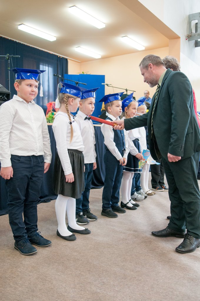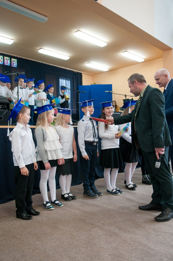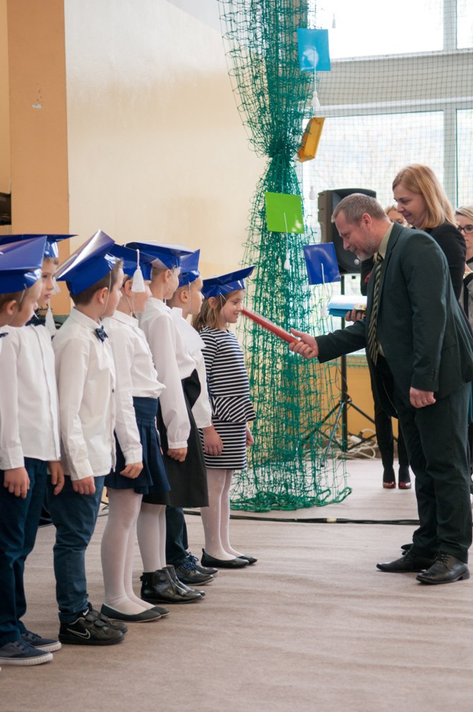W tym jakże wyjątkowym dniu dzieciom towarzyszyli rodzice, rodzeństwo oraz babcie i dziadkowie, którzy z dumą, a czasami nawet z kręcącą się w oku łezką obserwowali, jak ich pociechy wstępują w szeregi szkolnej braci.