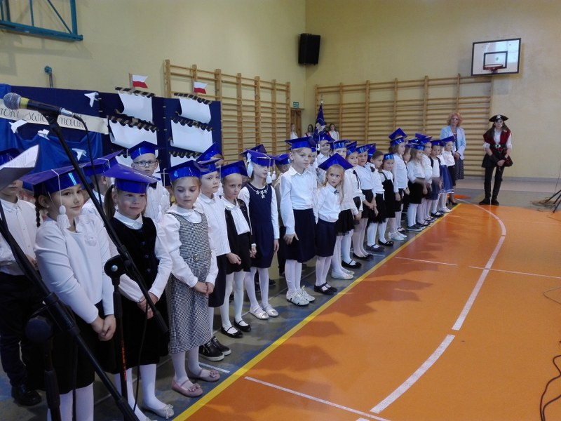 Uczniowie zdali egzamin śpiewająco, pomimo przeszkód, które napotykali ze strony złośliwego pirata. Wiele emocji wzbudził moment pasowania, którego czarodziejskim ołówkiem dokonała pani dyrektor szkoły –Wioletta Nowak. Na zakończenie uroczystości dzieci otrzymały legitymacje szkolne oraz upominki w postaci ,,matematycznych kuferków edukacyjnych”. Przez cały czas trwania uroczystości dzieci były wspierane gromkimi brawami przez zaproszonych gości, nauczycieli, rodziców oraz krewnych.