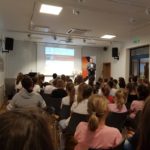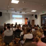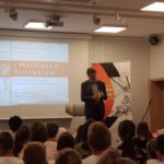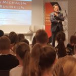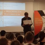 W literackiej prelekcji z dr. hab. Michałem Rusinkiem uczestniczyli delegaci klas IV – VIII.