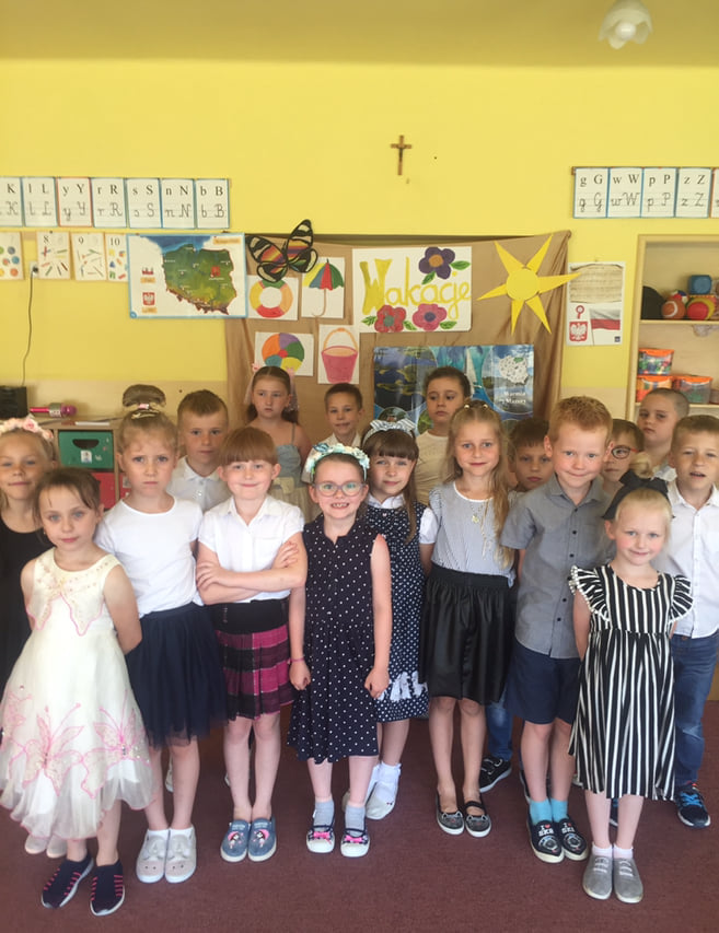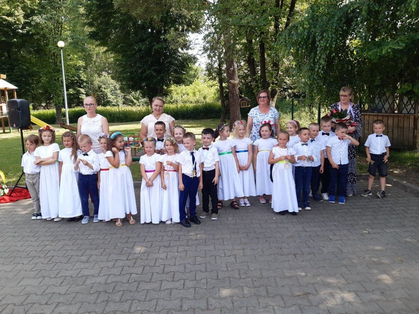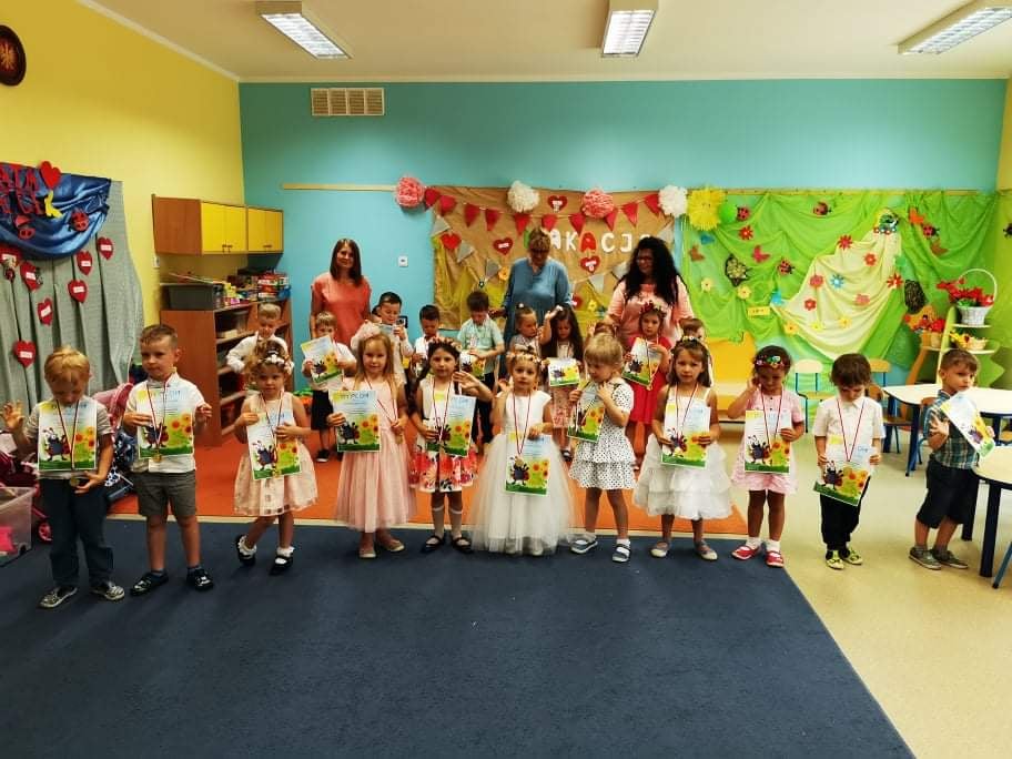 W tej uroczystości wzięli udział Dyrektor, Grono Pedagogiczne i Pracownicy przedszkola, Rodzice oraz młodsi koledzy i koleżanki. Pomimo tremy, która towarzyszyła młodym aktorom montaż słowno- muzyczny zrobił wrażenie na wszystkich oglądających przedstawienie. Dzieci młodsze otrzymały dyplomy przedszkola, a zerówkowicze ukończenia przedszkola.