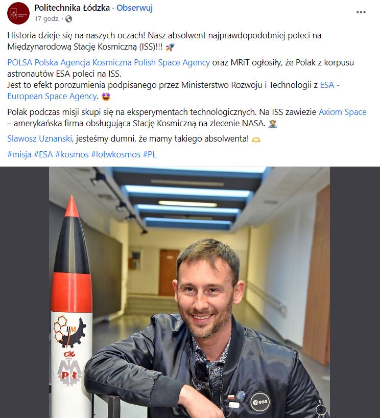 Polska będzie miała drugiego w historii astronautę w kosmosie!