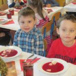 Po łamaniu się opłatkiem usiadły do wspaniałego świątecznego obiadu, aby po nim pod choinką znaleźć prezenty od ” Gwiazdki”.