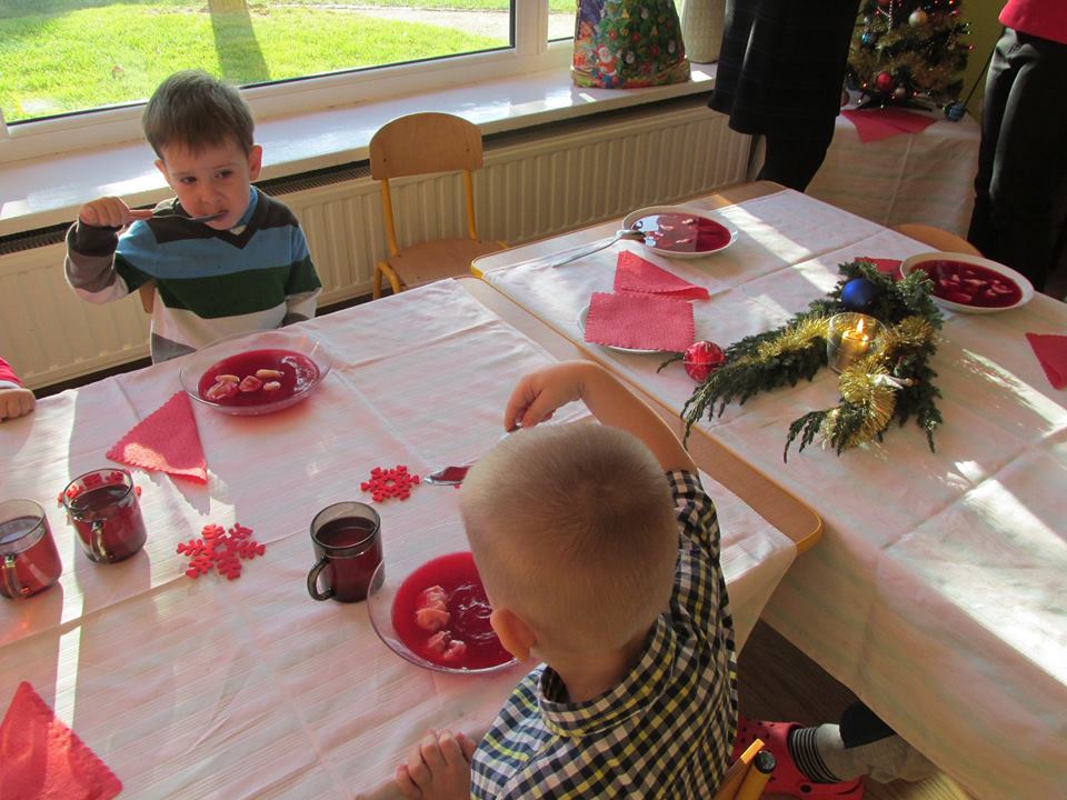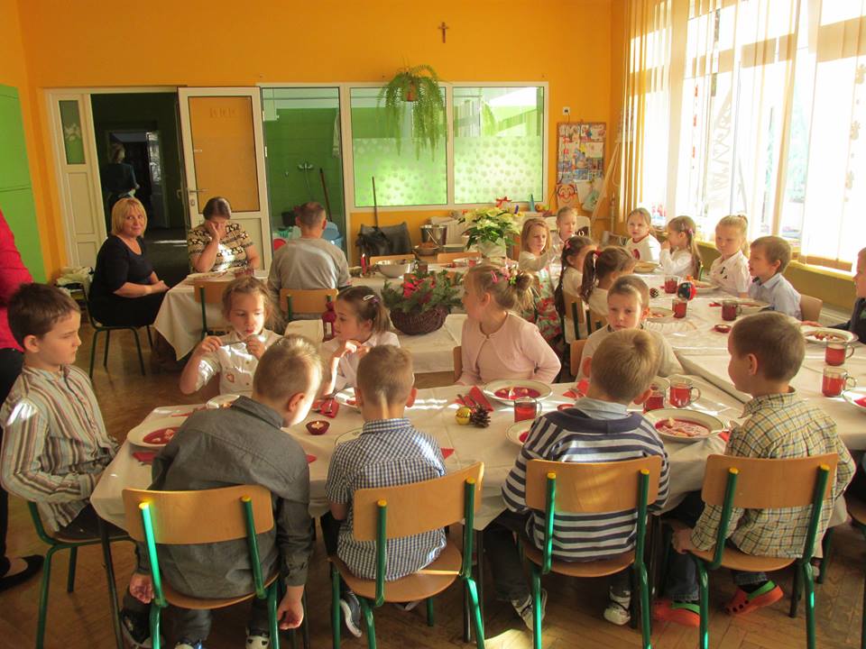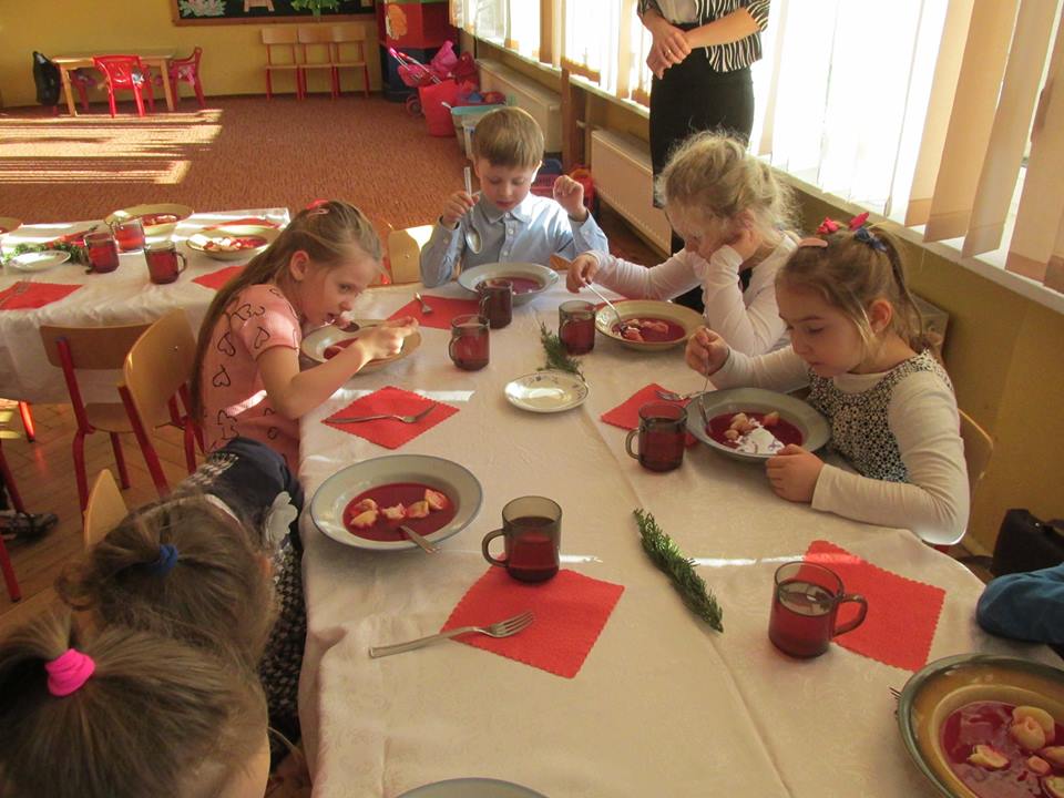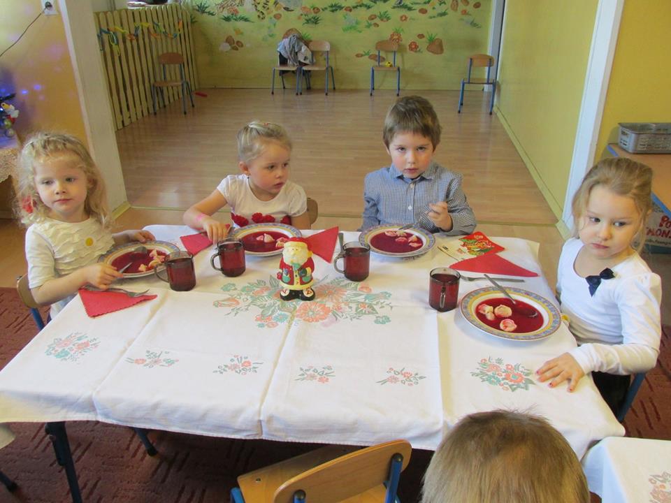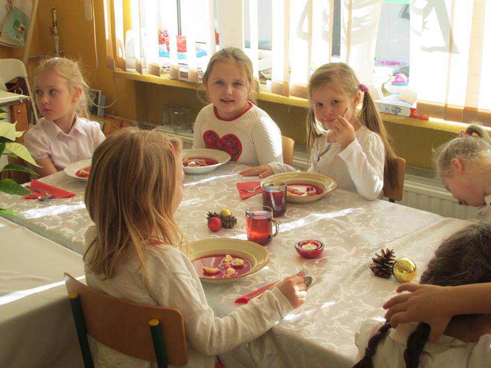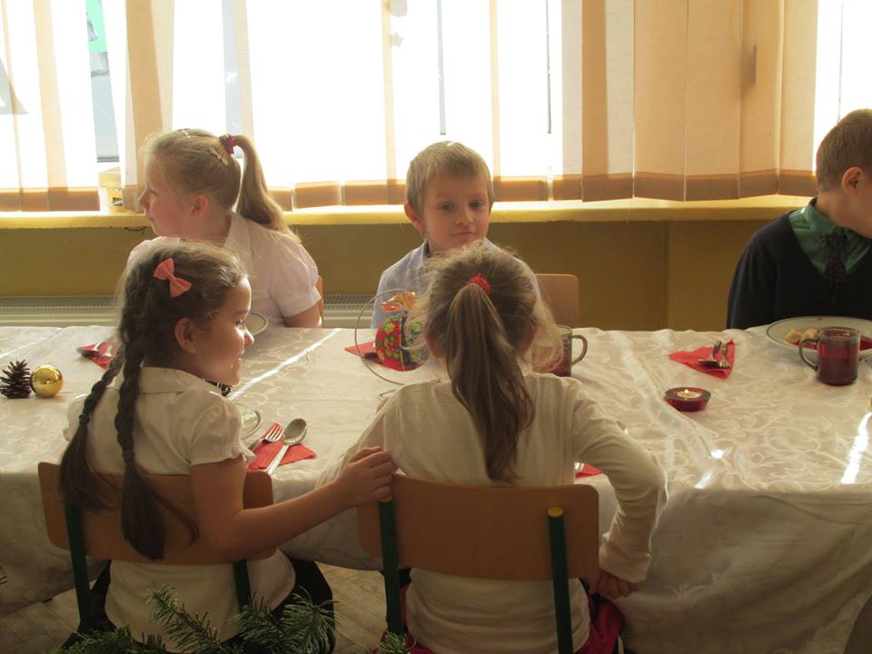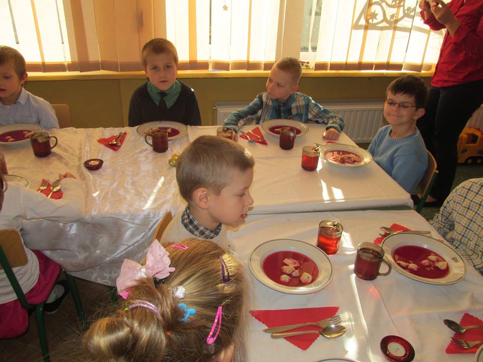 Po łamaniu się opłatkiem usiadły do wspaniałego świątecznego obiadu, aby po nim pod choinką znaleźć prezenty od ” Gwiazdki”.