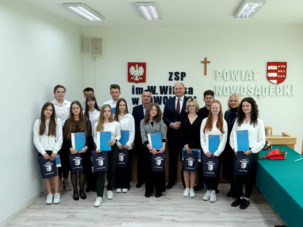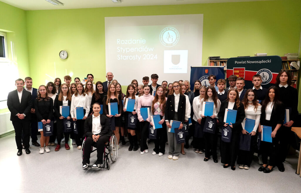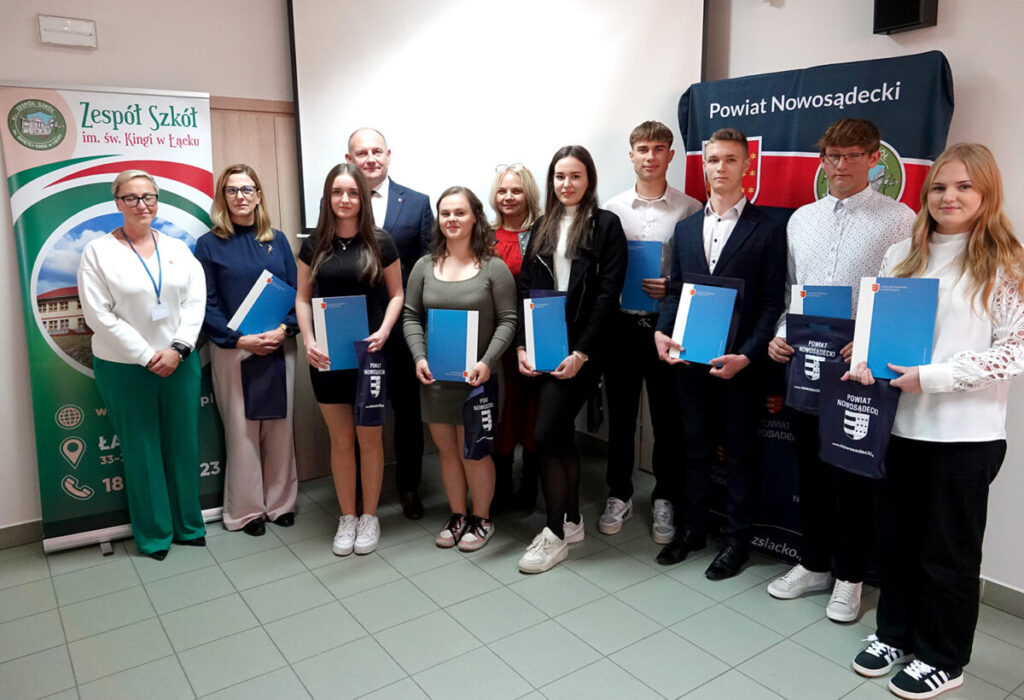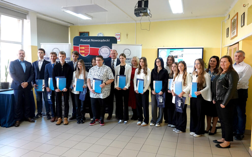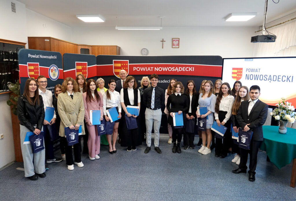 Zarząd Powiatu Nowosądeckiego przeznaczył w tym roku szkolnym: – 223 500 złotych – na stypendia edukacyjne dla najlepszych uczniów szkół powiatowych; – 21 000 złotych na jednorazowe stypendia materialne dla uczniów w trudnej sytuacji materialnej; – 50 000 złotych dla uczniów z Ukrainy (na cały rok szkolny). Stypendia w poszczególnych szkołach otrzymało: – Liceum Ogólnokształcące w Grybowie – 45 uczniów, – Zespół Szkół w Starym Sączu – 39 uczniów, – Zespół Szkół Ponadpodstawowych w Krynicy Zdroju – 19 uczniów, – Liceum Ogólnokształcące w Starym Sączu – 14 uczniów, – Zespół Szkół Ponadpodstawowych w Nawojowej – 13 uczniów, – Zespół Szkół w Marcinkowicach – 9 uczniów, – Zespół Szkół w Łącku – 8 uczniów, – Zespół Szkół Zawodowych w Grybowie – 2 uczniów. W spotkaniach w szkołach powiatowych wzięła udział Agnieszka Wyrazik-Tyrpak – dyrektor Wydziału Edukacji, Kultury i Sportu Starostwa Powiatowego w Nowym Sączu.