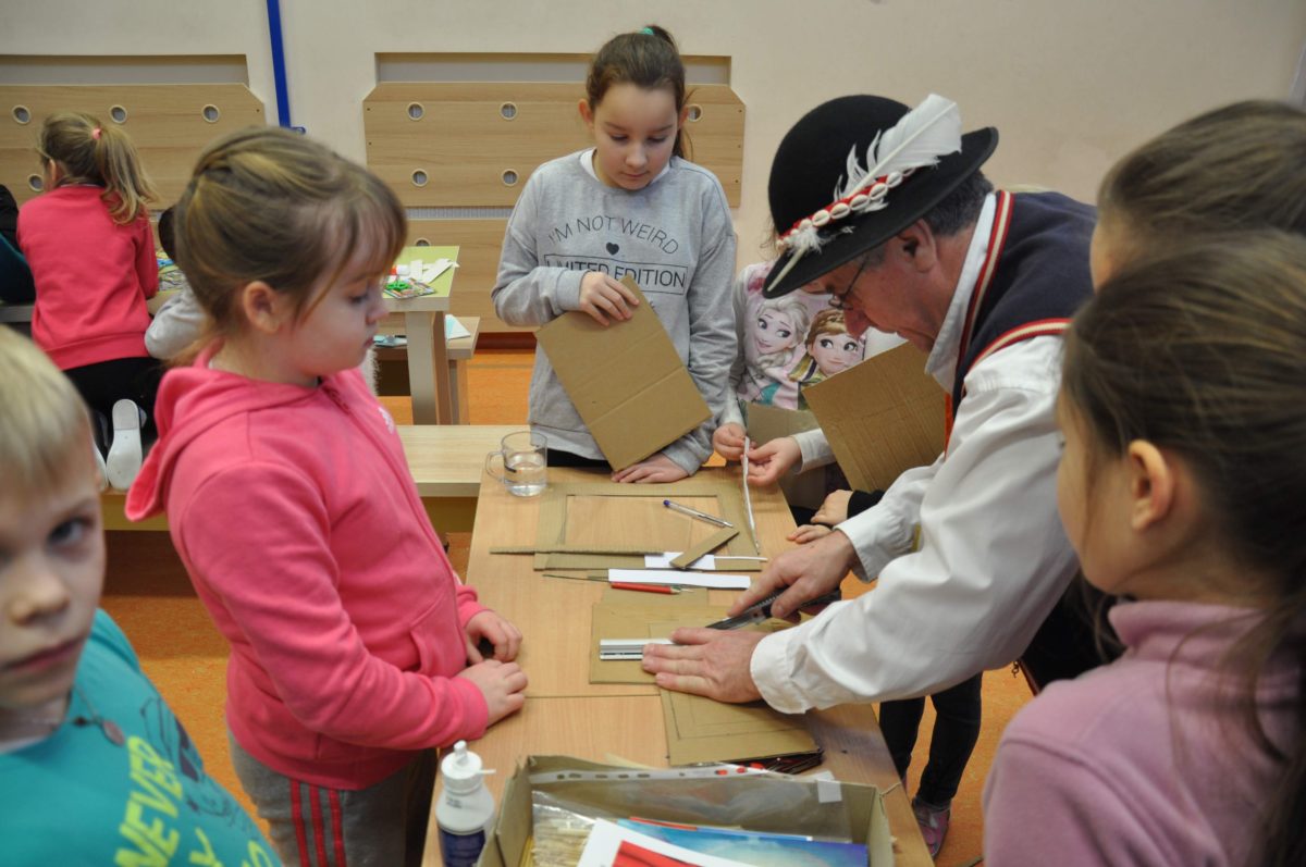Uczniowie Szkoły Podstawowej w Popowicach gościli Pana Bogdana Florkiewicza, lokalnego artystę, który zajmuje się oprawą obrazów przy pomocy wypalanej słomy. Oprawione przez niego obrazy wyglądają przepięknie. Przeprowadził on dla dzieci z klas od 1 do 3 warsztaty, na których uczniowie przy pomocy swoich wychowawców mogli popróbować swoich sił w tworzeniu opraw na małe widokówki.