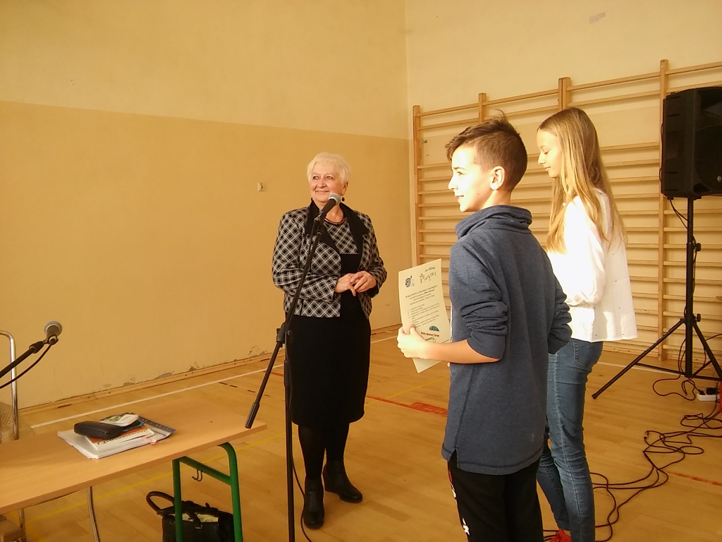 Punktem kulminacyjnym spotkania „Poznajemy radnych naszego miasta” było uhonorowanie gościa szkoły tytułem: „Urzędnika przyjaznego dzieciom”. Przewodniczącej Rady Miejskiej – Pani Ewie Zielińskiej – wręczono również dokument – „Listę postulatów dzieci i młodzieży” odzwierciedlających marzenia młodego pokolenia.