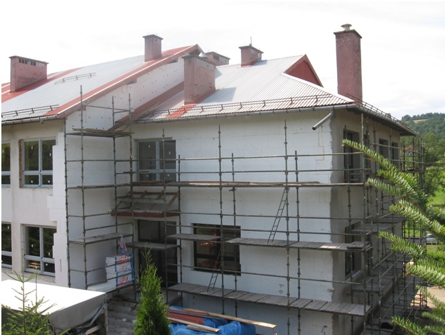 W doskonałym tempie postępują roboty budowlane związane z termomodernizacją budynków szkół podstawowych w m. Łącko i Zagorzyn.