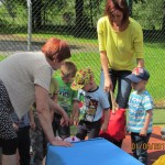 Na boisku szkolnym mali goście mieli okazję wykazać się w różnych zadaniach np. w noszeniu piłeczki na paletce, rzucie piłką do kosza, przeciąganiu liny, ringo, strzale na bramkę.
