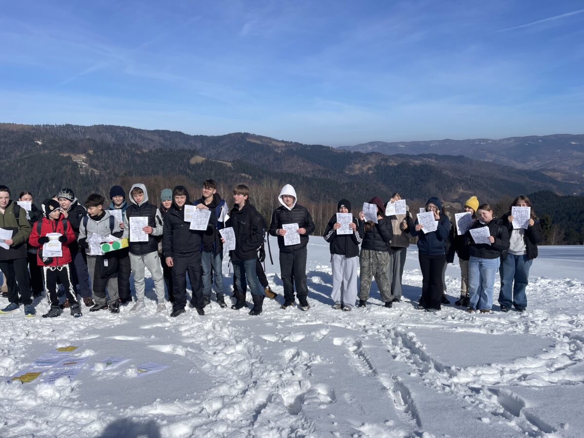 W piątek, 27 lutego 2026 roku, 26 uczniów z klas 5-7 ze Szkoły Podstawowej nr 2 im. Juliusza Słowackiego w Starym Sączu wyruszyło z Kosarzysk w ramach innowacji z języka angielskiego „The treasure chest” na zajęcia plenerowe w Paśmie Radziejowej, podczas których trenowali umiejętność wskazywania drogi i pytania o drogę, oczywiście w języku angielskim.