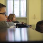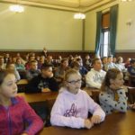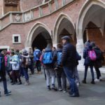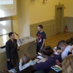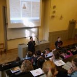 W sercu Starego Miasta, blisko historii i tradycji, grupa 54 szóstoklasistów pojawiła się punktualnie o godz. 9.00. Tu, w gmachu Collegium Witkowskiego, cieszącym się zasłużoną opinią niezwykłego miejsca filozofowania, gdzie profesor Józef Tischner przez wiele lat prowadził pasjonujące, intelektualne spotkania ze studentami, przyciągające tłumy słuchaczy, uczniowie „1” uczestniczyli w specjalnie dla nich przygotowanym wykładzie „Żołnierze Niezłomni”. Temat wykładu, zaproponowany przez organizatorki szkolnej wycieczki, stanowił kontynuację projektu „Być Polakiem w każdym wieku”, organizowanego pod honorowym patronatem Burmistrza Starego Sącza. Wykład, połączony z warsztatami, w pięknej, amfiteatralnej auli im. ks. prof. Józefa Tischnera, poprowadził doktorant UJ pan Mateusz Gawlik.