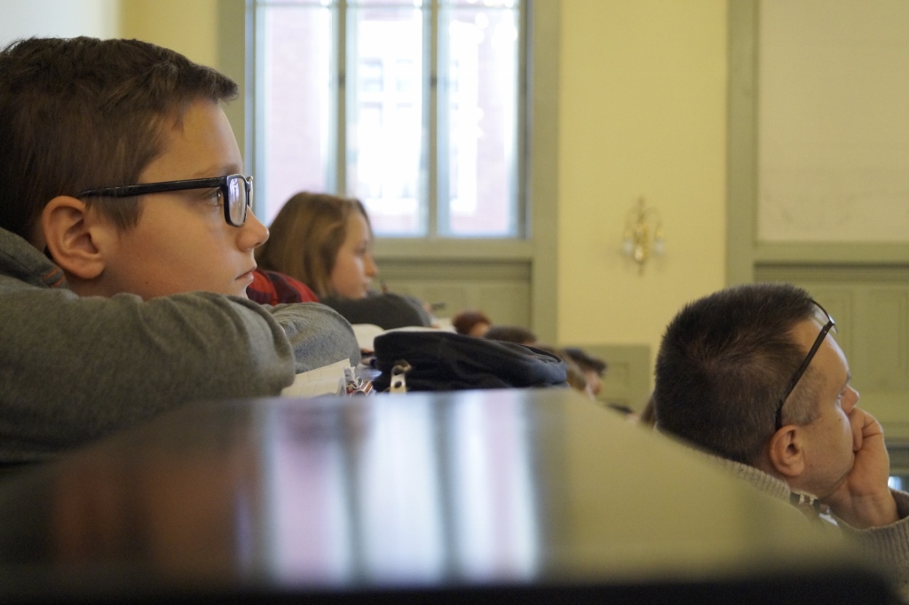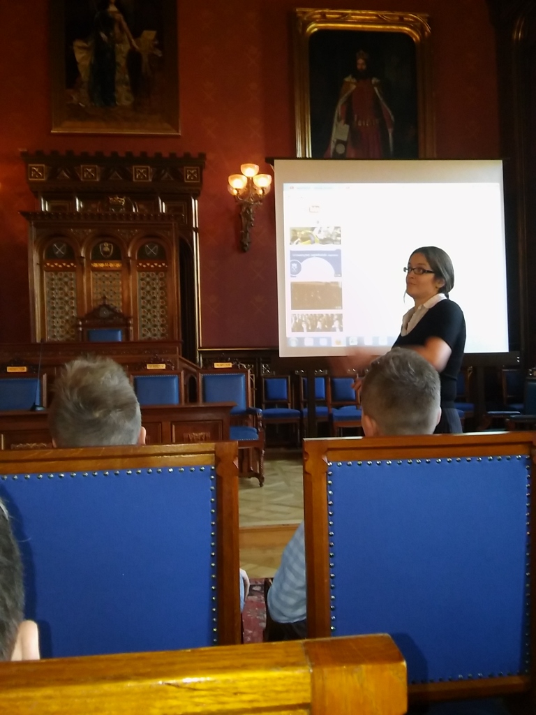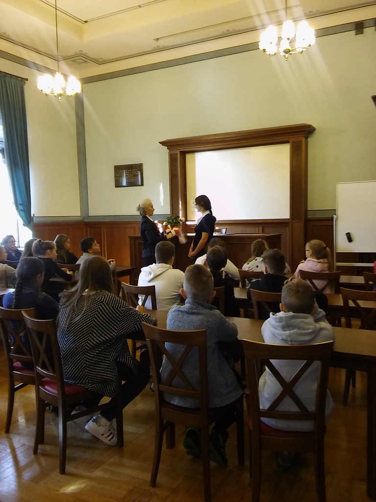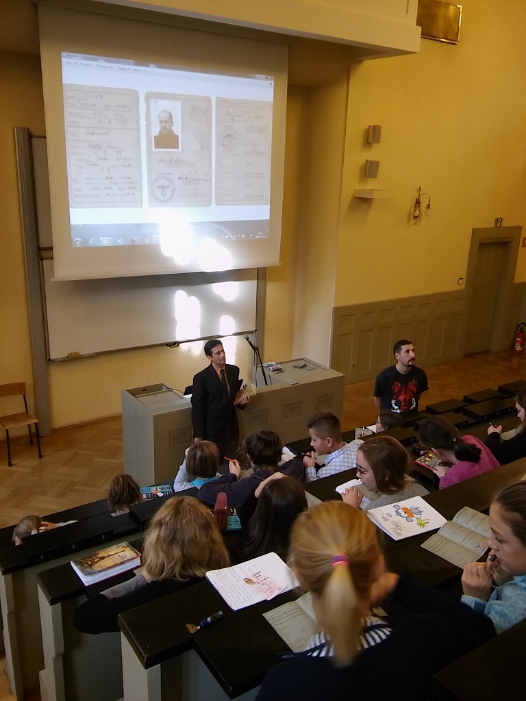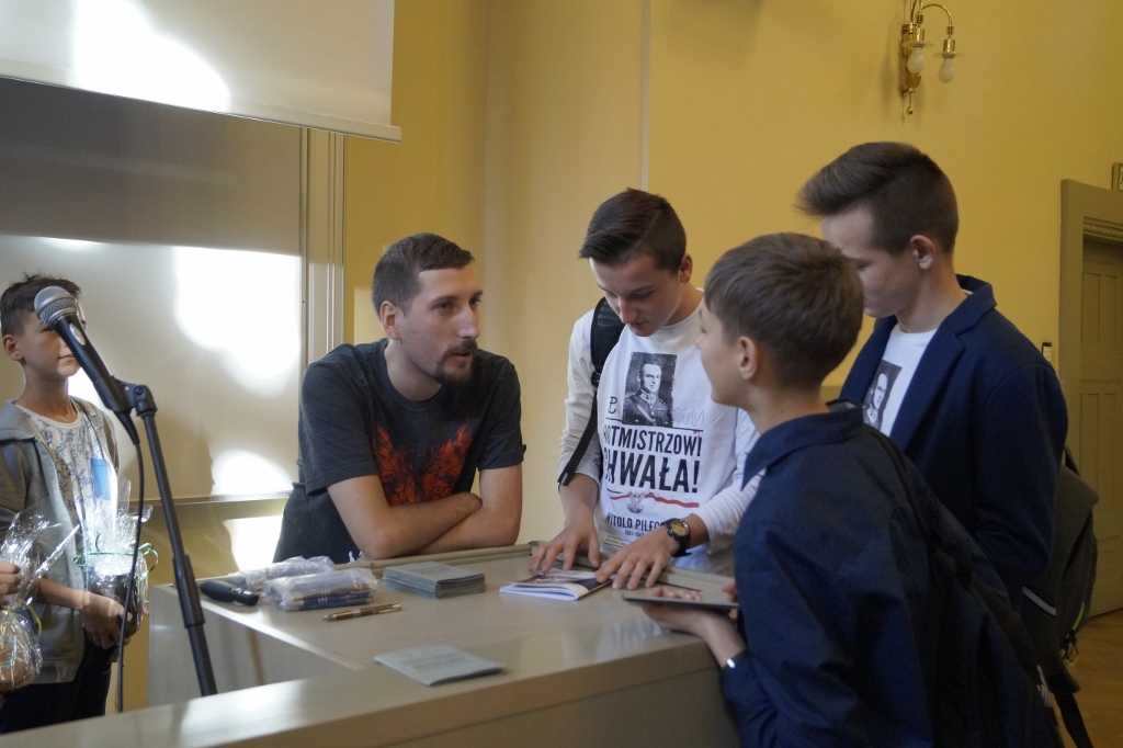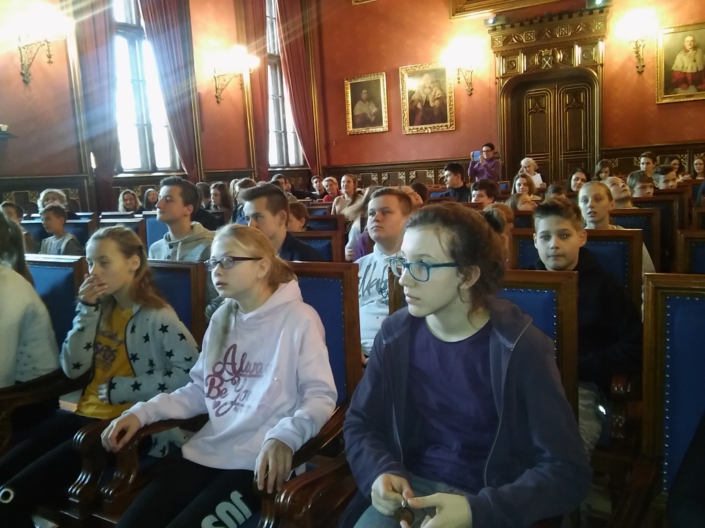 W sercu Starego Miasta, blisko historii i tradycji, grupa 54 szóstoklasistów pojawiła się punktualnie o godz. 9.00. Tu, w gmachu Collegium Witkowskiego, cieszącym się zasłużoną opinią niezwykłego miejsca filozofowania, gdzie profesor Józef Tischner przez wiele lat prowadził pasjonujące, intelektualne spotkania ze studentami, przyciągające tłumy słuchaczy, uczniowie „1” uczestniczyli w specjalnie dla nich przygotowanym wykładzie „Żołnierze Niezłomni”. Temat wykładu, zaproponowany przez organizatorki szkolnej wycieczki, stanowił kontynuację projektu „Być Polakiem w każdym wieku”, organizowanego pod honorowym patronatem Burmistrza Starego Sącza. Wykład, połączony z warsztatami, w pięknej, amfiteatralnej auli im. ks. prof. Józefa Tischnera, poprowadził doktorant UJ pan Mateusz Gawlik.