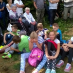 Po tych wszystkich wrażeniach udaliśmy się w kierunku schroniska skąd dobiegła do nas woń grochówki, którą przygotowała dla zgłodniałych uczestników uroczystości, szkoła w Barcicach. Po krótkim oczekiwaniu na swój przydział rozsiedliśmy się na trawie, aby degustować tę wyśmienitą, żołnierską zupę. Ponieważ cały dzień towarzyszyła nam słoneczna pogoda, więc nie za bardzo chciało nam się wracać. Niestety czas nieubłaganie płynął i po godzinie 14:00 ruszyliśmy niebieskim szlakiem w drogę powrotną. Po drodze pokonaliśmy 77 zakrętów i stromizny takie, że niejeden z nas zaliczył twarde lądowanie, a nawet dziurę w spodniach na kolanie. Nikt jednak nie narzekał, przeciwnie jako ci co są „zaprawieni w boju”, z uśmiechem na ustach dotarliśmy do Łomnicy, skąd szczęśliwie wróciliśmy do Przysietnicy.