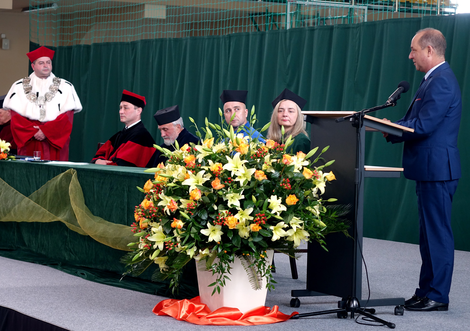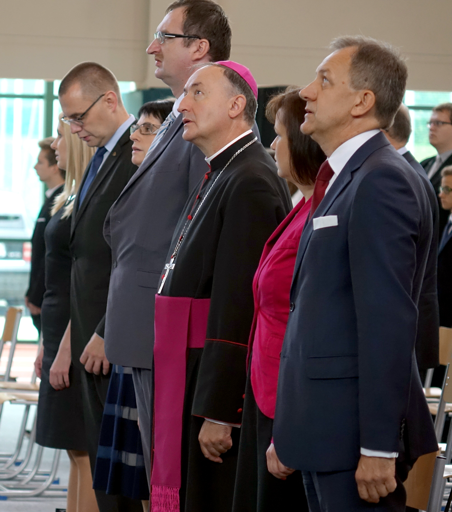 W dzisiejszej uroczystości wzięli udział m.in.: starosta nowosądecki Marek Pławiak prezydent Nowego Sącza Ryszard Nowak i wiceprezydent Wojciech Piech, dyrektor generalny MUW w Krakowie Paweł Mucha, ks. bp Andrzej Jeż, senator Stanisław Kogut, radny SWM Stanisław Pasoń oraz pracownicy, wykładowcy i studenci i przyjaciele sądeckiej PWSZ.