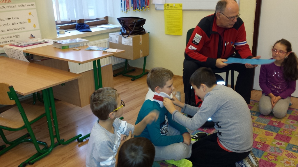 Druga lekcja odbyła się w szkole. –Uczyliśmy się pierwszej pomocy, jak reagować na zagrożenia. Na koniec dostaliśmy książki „ABC małego ratownika”, oraz zaproszenie do jednostki ratowniczej w Krynicy. Chcielibyśmy bardzo podziękować panom ratownikom, w szczególności Panu Krzysztofowi Sztafie za tak atrakcyjne i ciekawe zajęcia -podsumowują.