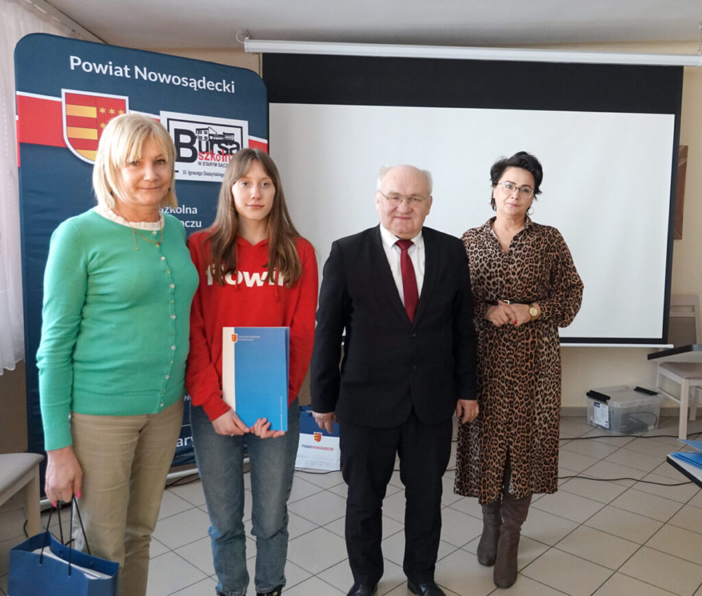W spotkaniu wzięli udział m.in.: Edward Ciągło – członek Zarządu Powiatu Nowosądeckiego, Bożena Mynarek – dyrektor Wydziału Edukacji, Kultury i Sportu Starostwa Powiatowego w Nowym Sączu, Małgorzata Skwarka z tego wydziału oraz Lucyna Dybiec – dyrektor Bursy Szkolnej w Starym Sączu, nauczyciele i uczniowie startujący w konkursie.