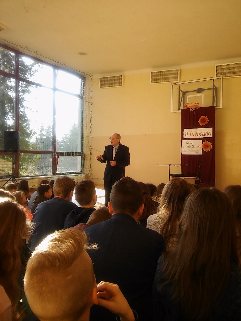 – Zorganizowanie spotkania z bohaterem historii – Sybirakiem – panem  Kazimierzem Korczyńskim, historykiem, absolwentem Uniwersytetu Jagiellońskiego (w ramach wdrożonego w szkole przez koordynatorki wolontariatu projektu „Ojczyzna – na start!”).