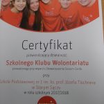 – Zorganizowanie w szkole spotkania z koordynatorką Stowarzyszenia Sursum Corda panią mgr Haliną Rams i udział w sympozjum „ABC podstaw prawnych wolontariatu”.