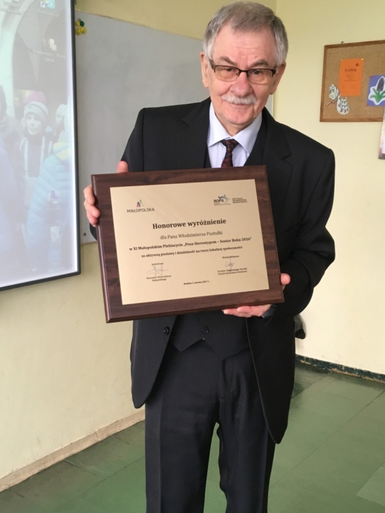 Spotkanie z panem Włodzimierzem Pustułką, absolwentem Uniwersytetu Jagiellońskiego, studentem starosądeckiego Uniwersytetu III Wieku, Bohaterem Roku 2017, laureatem Małopolskiego Plebiscytu „Poza Stereotypem – Senior Roku”.