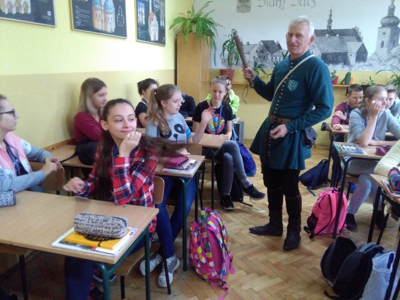 Pan Radzik opowiedział również o bractwie, jego działalności kulturalnej, edukacyjnej, promocyjnej i zajęciach członków. Uczniowie kl.2b i Pani Maria Bielak brawami nagrodzili pokaz i podziękowali za wizytę sadeckiego bractwa.
