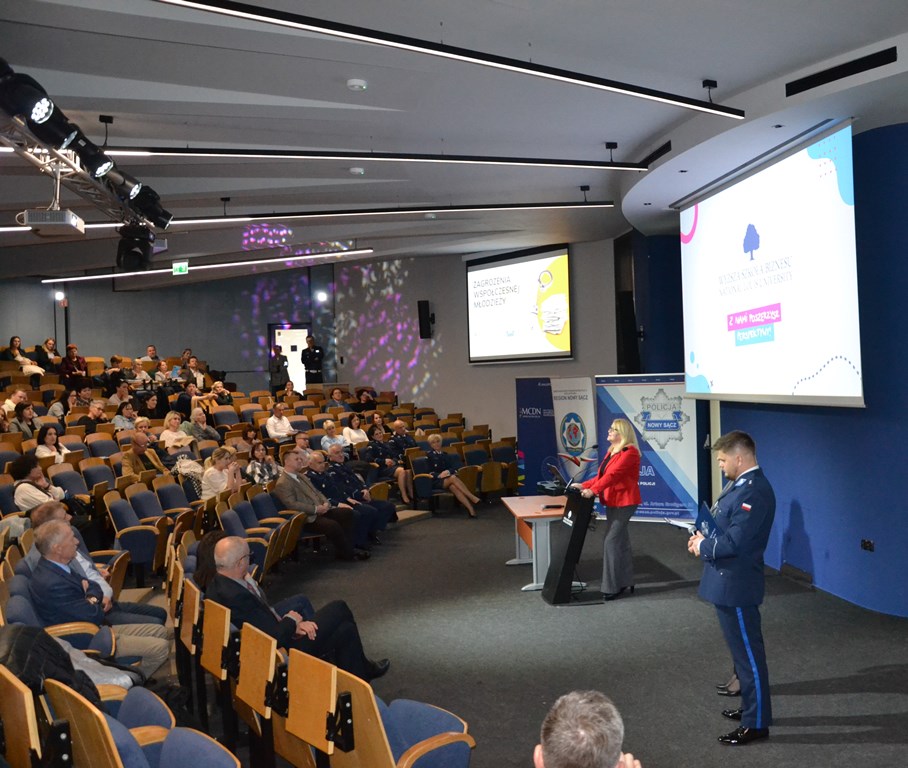 Sądeccy policjanci współorganizowali konferencję szkoleniową na temat zagrożeń współczesnej młodzieży