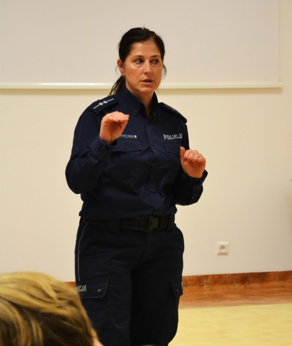 Uczniowie wzięli także udział w spotkaniu zorganizowanym przez funkcjonariuszy Zespołu ds. Prewencji Kryminalnej Nieletnich i Patologii Wydziału Prewencji, podczas którego dowiedzieli się jak wygląda codzienna służba funkcjonariusza Policji. W prelekcji uczestniczyli także nowo przyjęci policjanci, którzy wraz z doświadczonymi kolegami z pionu prewencji, opowiedzieli co należy zrobić, aby zostać policjantem, ile trwa i jak wygląda proces rekrutacji. Młodzi ludzie z zainteresowaniem wysłuchali wykładu. Możliwe, że wśród nich jest przyszły funkcjonariusz Policji.
