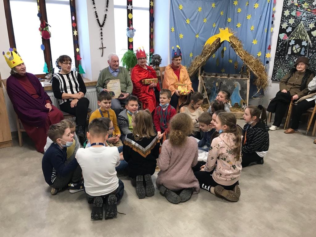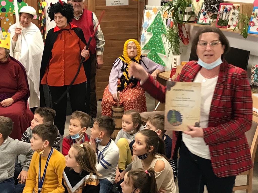 14 stycznia 2022 roku to właśnie seniorzy przygotowali niezwykłą niespodziankę dla uczniów w postaci Jasełek Bożonarodzeniowych. Po przedstawieniu był czas na wspólne kolędowanie i słodki poczęstunek. Seniorzy otrzymali od uczniów pamiątkowy dyplom, moc uśmiechów i oklasków.