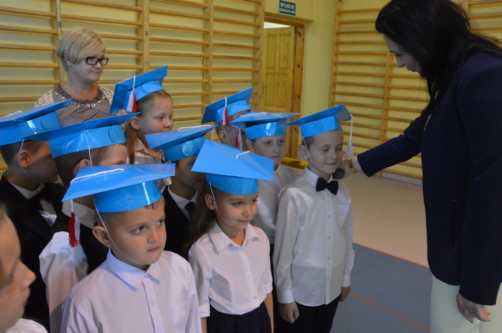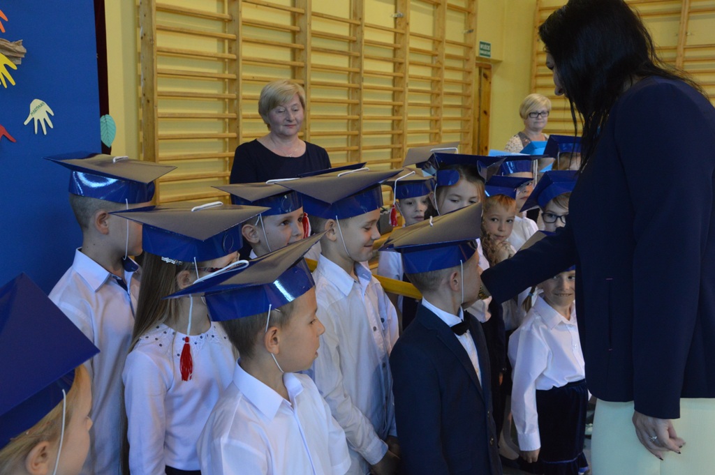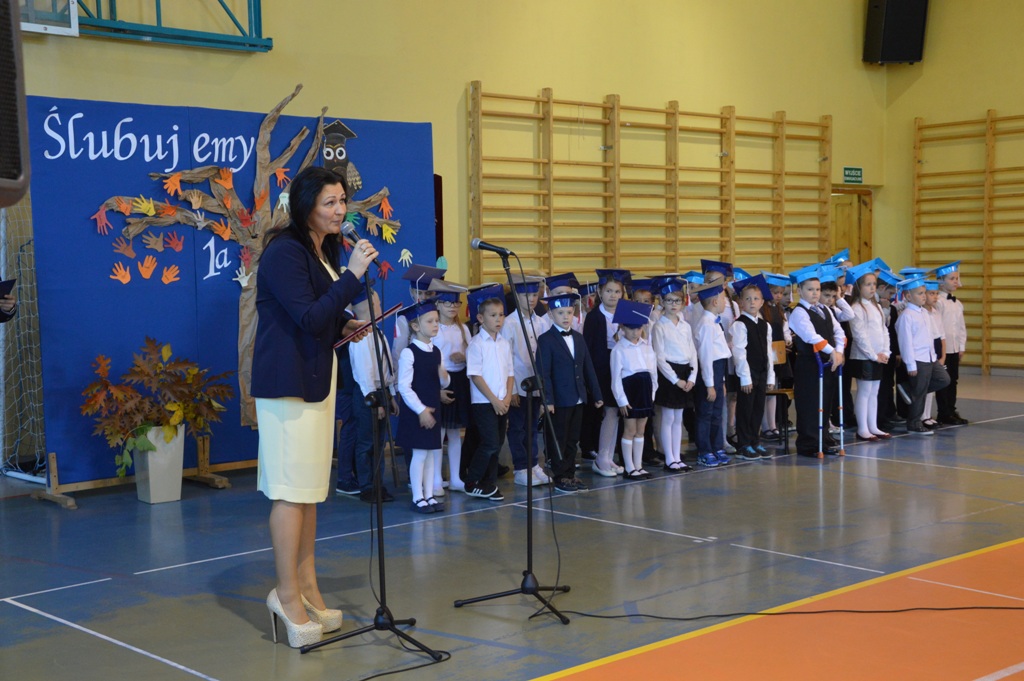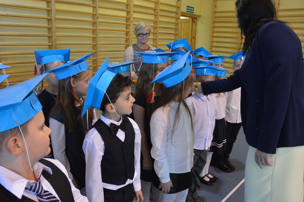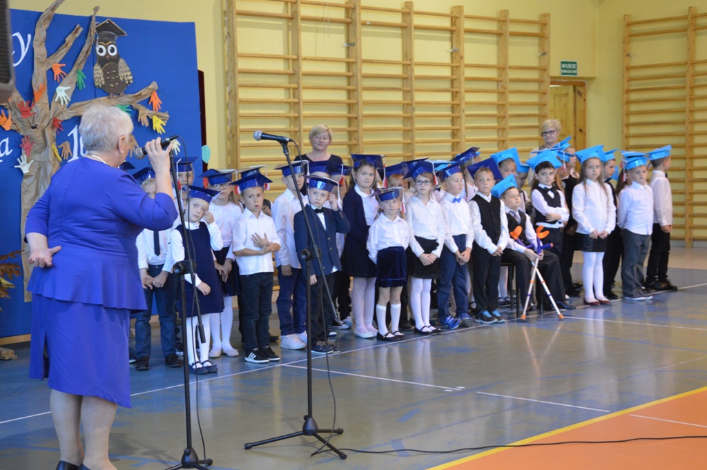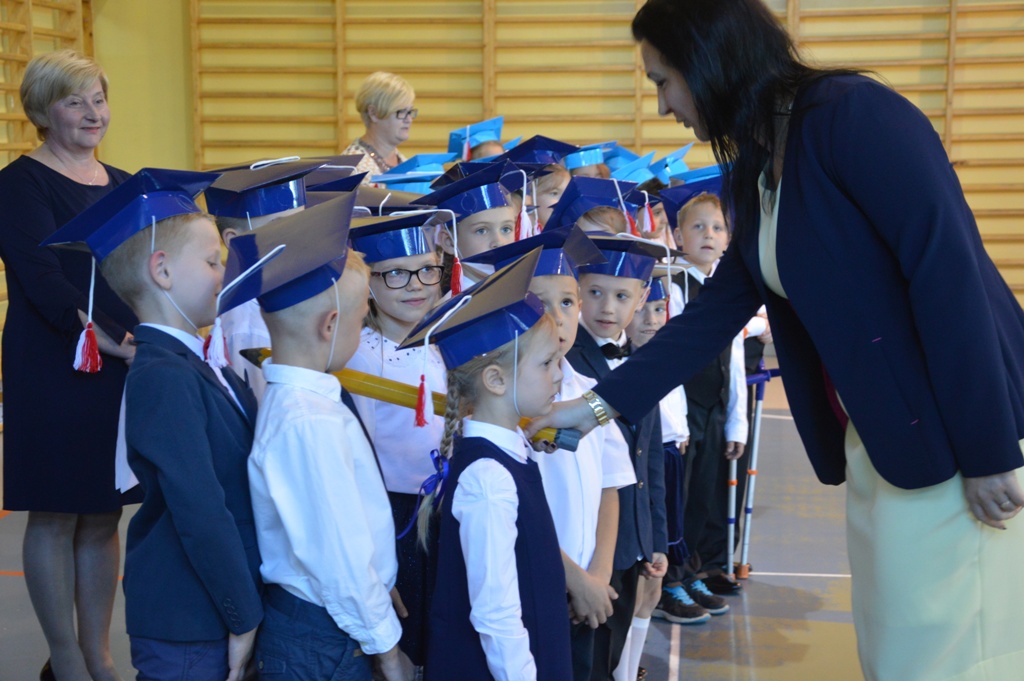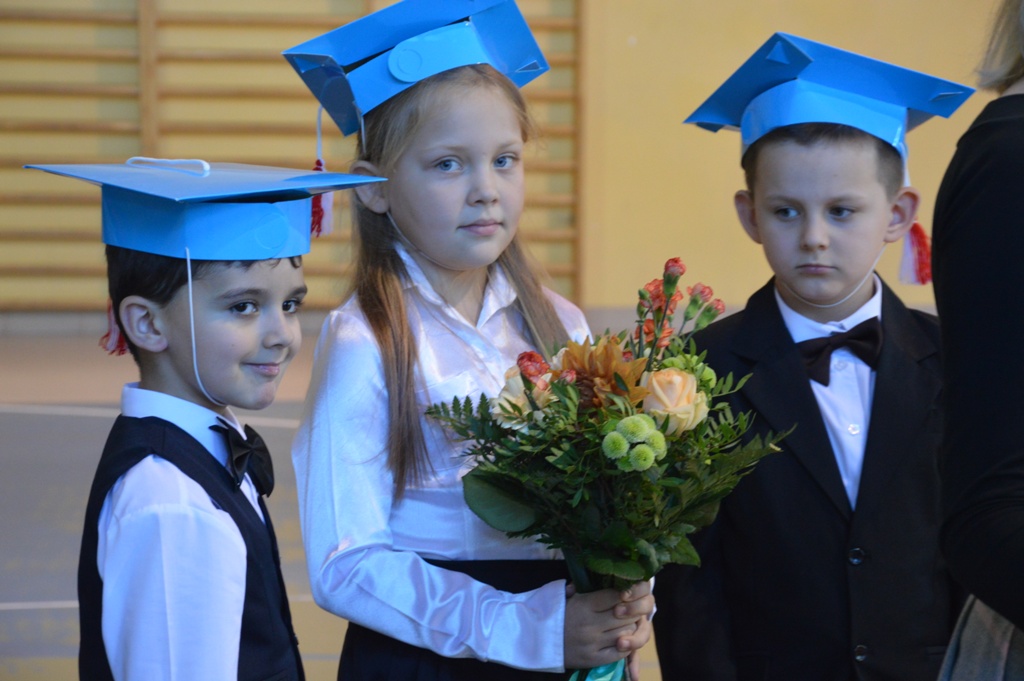 Szczególnie miłym akcentem było wręczenie na ręce wychowawców – p. Bożeny Bielak i p. Stanisławy Bielak, upominków dla uczniów klas pierwszych. Słodkości, i nie tylko, wręczyli: przewodnicząca Rady Miejskiej, p. Ewa Zielińska, przewodnicząca Rady Rodziców, p. Anna Tokarczyk oraz przewodniczący Uczniowskiej Rady Szkolnej, Artur Janusz.